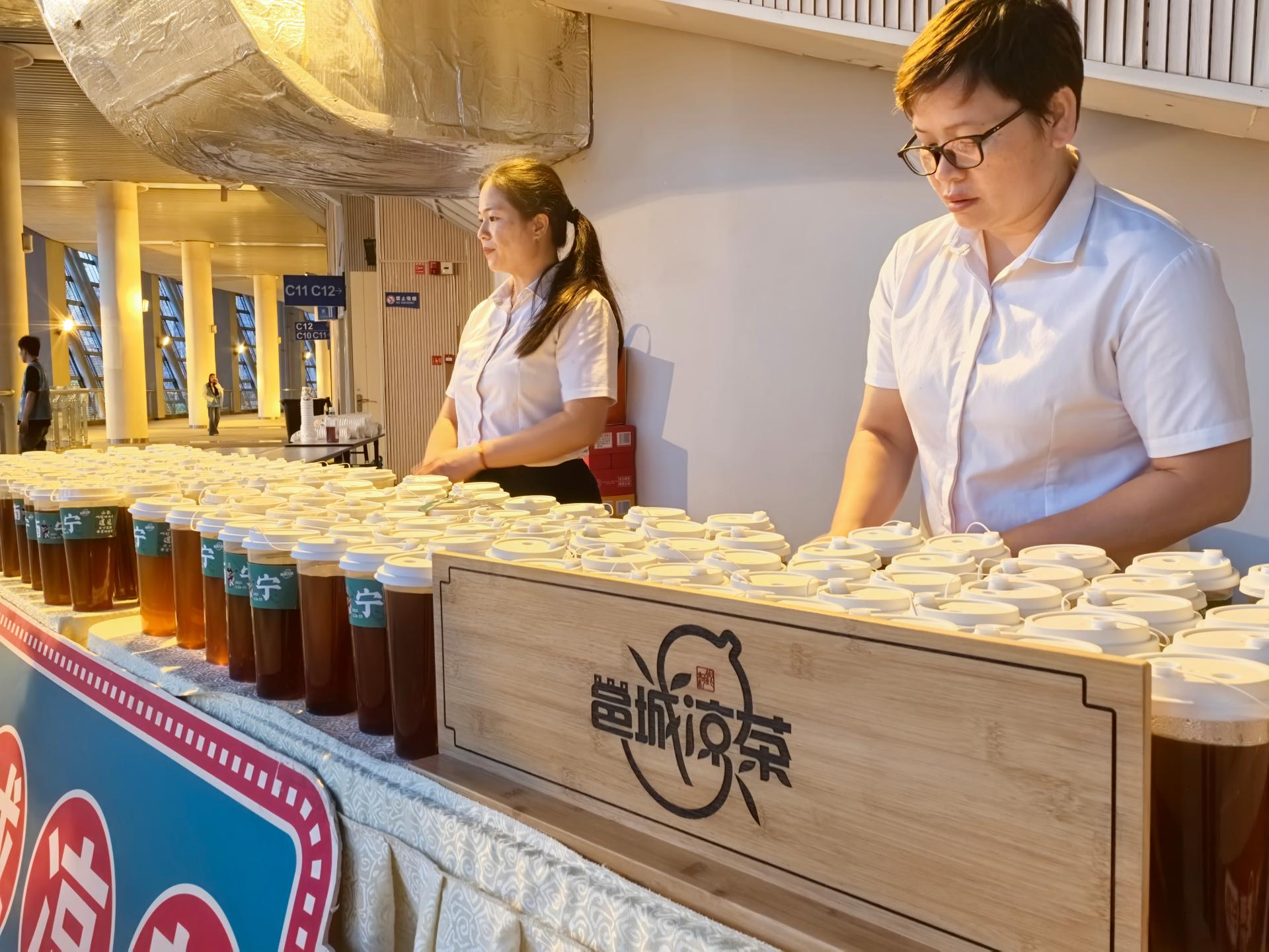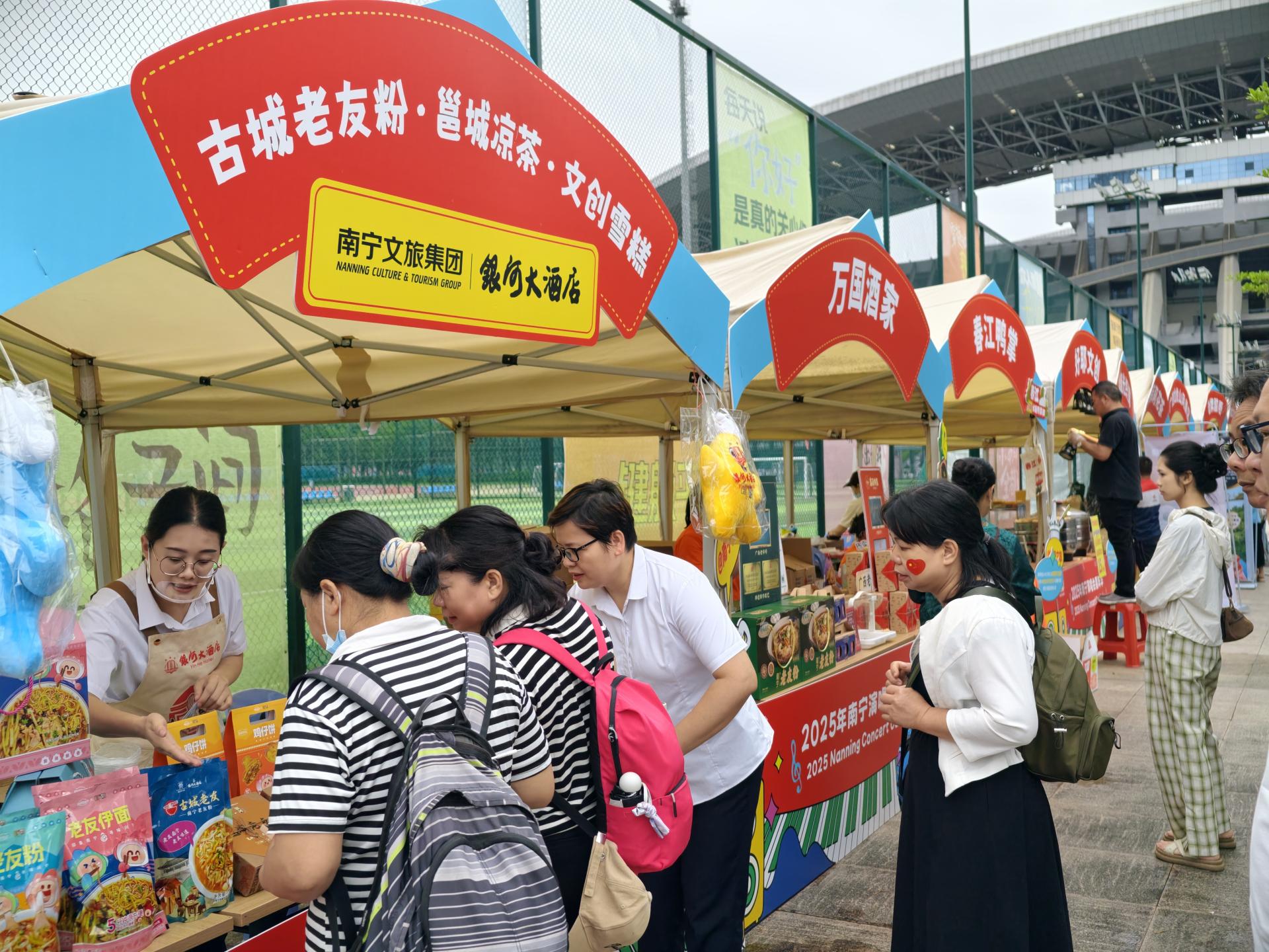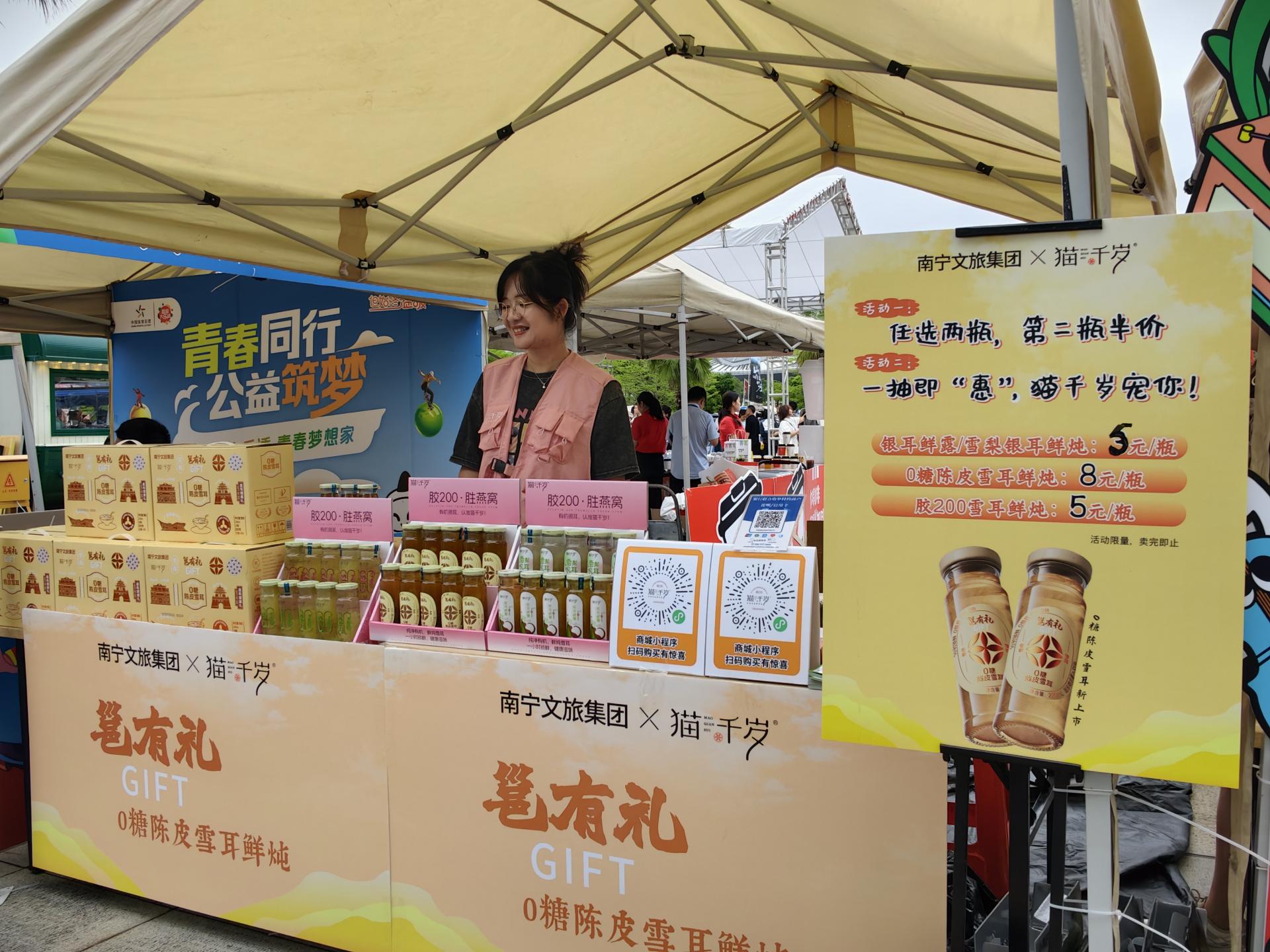 為豐富演唱會(huì)外延體驗(yàn),南寧文旅集團(tuán)精心策劃一系列配套活動(dòng)。在廣西體育中心噴泉廣場(chǎng),打造47個(gè)攤點(diǎn)的廣西非遺特色演唱會(huì)市集。南寧文旅集團(tuán)聯(lián)合貓千歲品牌出品的“邕有禮”銀耳系列好禮成為市集的焦點(diǎn);銀河公司旗下的古城老友粉、邕城涼茶以及文創(chuàng)雪糕讓歌迷們大飽口福,“邕城涼茶”更是連續(xù)兩天在開(kāi)場(chǎng)前被搶購(gòu)一空;五象山莊在體育館內(nèi)區(qū)域設(shè)立“五象能量站”,提供薄荷檸檬水、凍檸樂(lè)、手作軟歐包等,供粉絲進(jìn)行現(xiàn)場(chǎng)的能量補(bǔ)給。據(jù)統(tǒng)計(jì),為期兩天的演出,共吸引3萬(wàn)歌迷體驗(yàn)市集活動(dòng)。