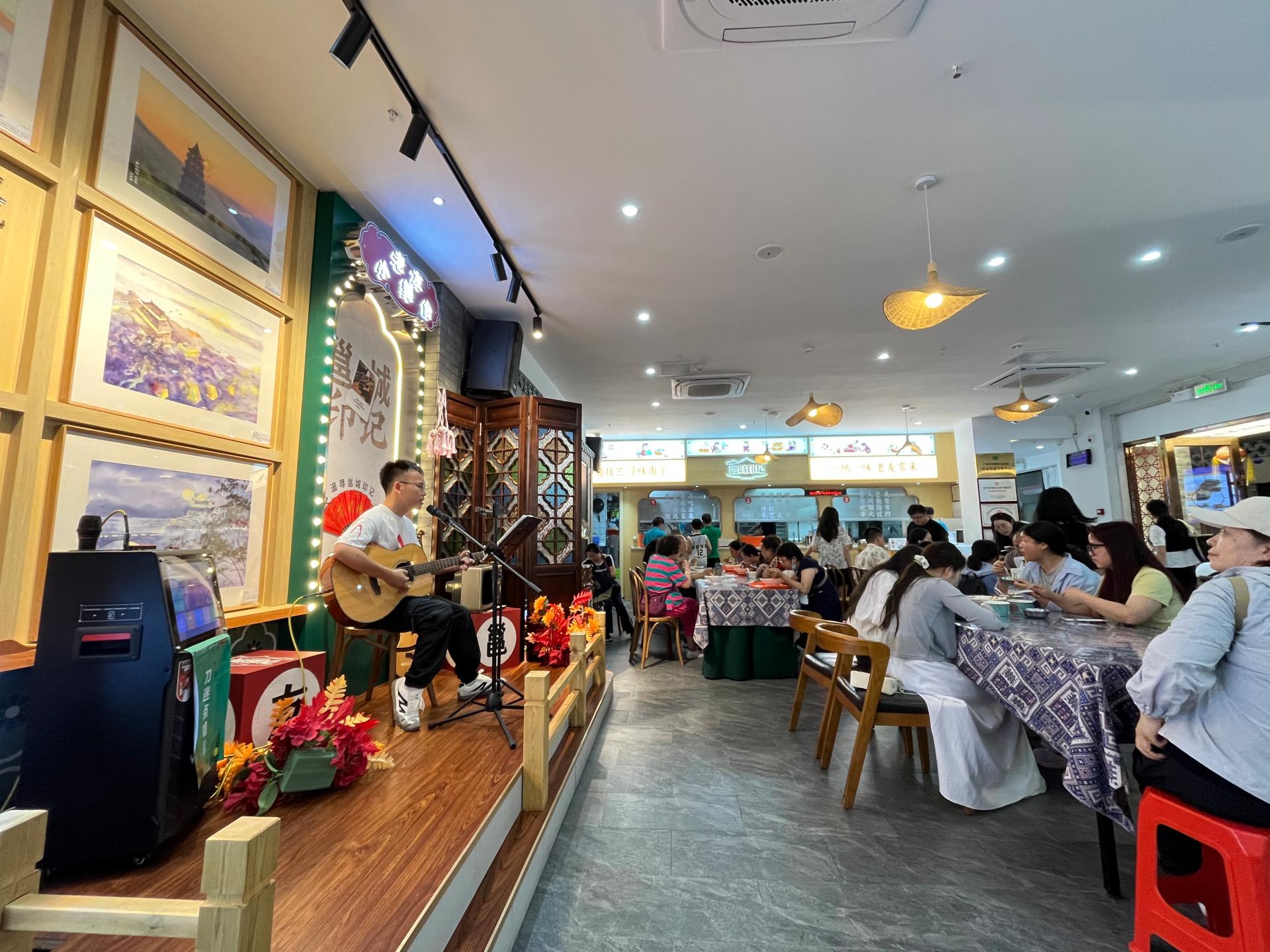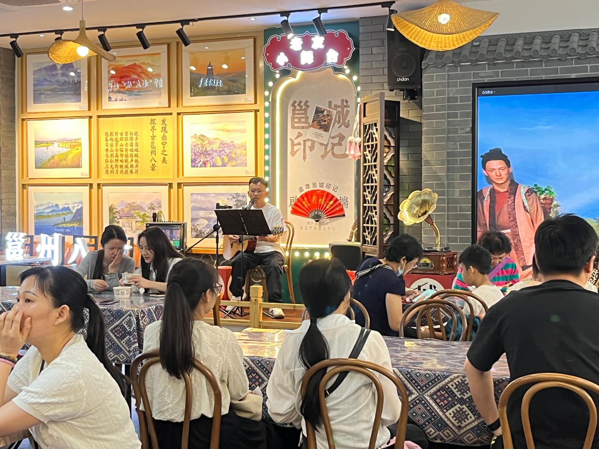 南寧文旅集團(tuán)將觀演活動(dòng)與文旅資源深度綁定,在旗下品牌邕城印記店內(nèi)外設(shè)置2個(gè)歌迷打卡點(diǎn),店外全天設(shè)置應(yīng)援合影美陳,同時(shí)放置“刀迷點(diǎn)唱機(jī)”讓歌迷現(xiàn)場(chǎng)點(diǎn)唱刀郎歌曲,加熱互動(dòng)氛圍;演唱會(huì)期間,店內(nèi)連續(xù)兩晚開(kāi)展“邕城老友小舞臺(tái)”刀郎金曲專(zhuān)場(chǎng)演出,由“銀河老友”樂(lè)隊(duì)彈唱刀郎經(jīng)典歌曲,到店顧客可以聽(tīng)歌打卡、點(diǎn)歌互動(dòng)和大合唱,增加觀演樂(lè)趣和集體互動(dòng)性,吸引過(guò)萬(wàn)人次到店打卡、用餐、消費(fèi)。