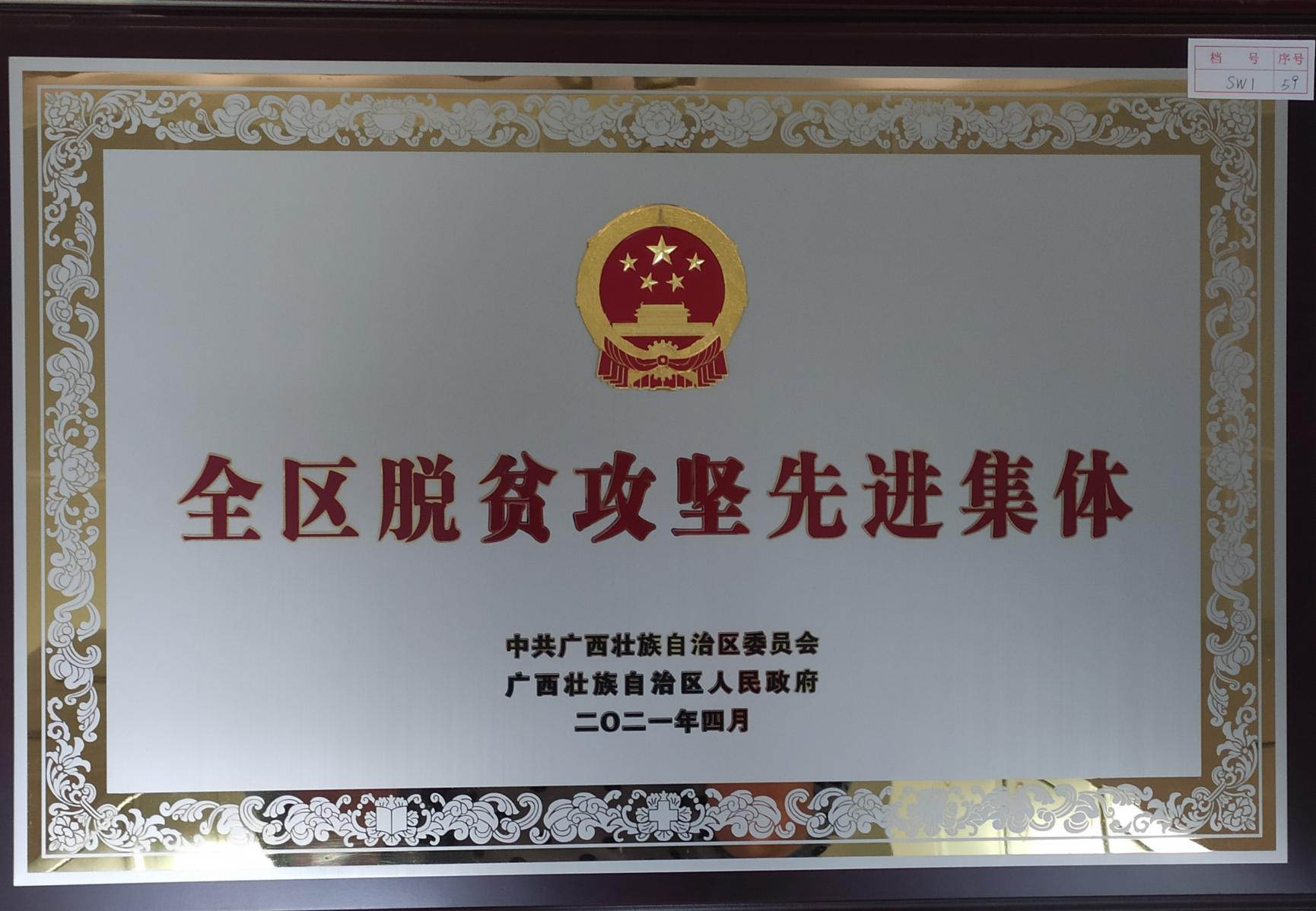 2021年4月,中共廣西壯族自治區(qū)委員會(huì)、廣西壯族自治區(qū)人民政府授予南寧威寧集團(tuán)全區(qū)脫貧攻堅(jiān)先進(jìn)集團(tuán)