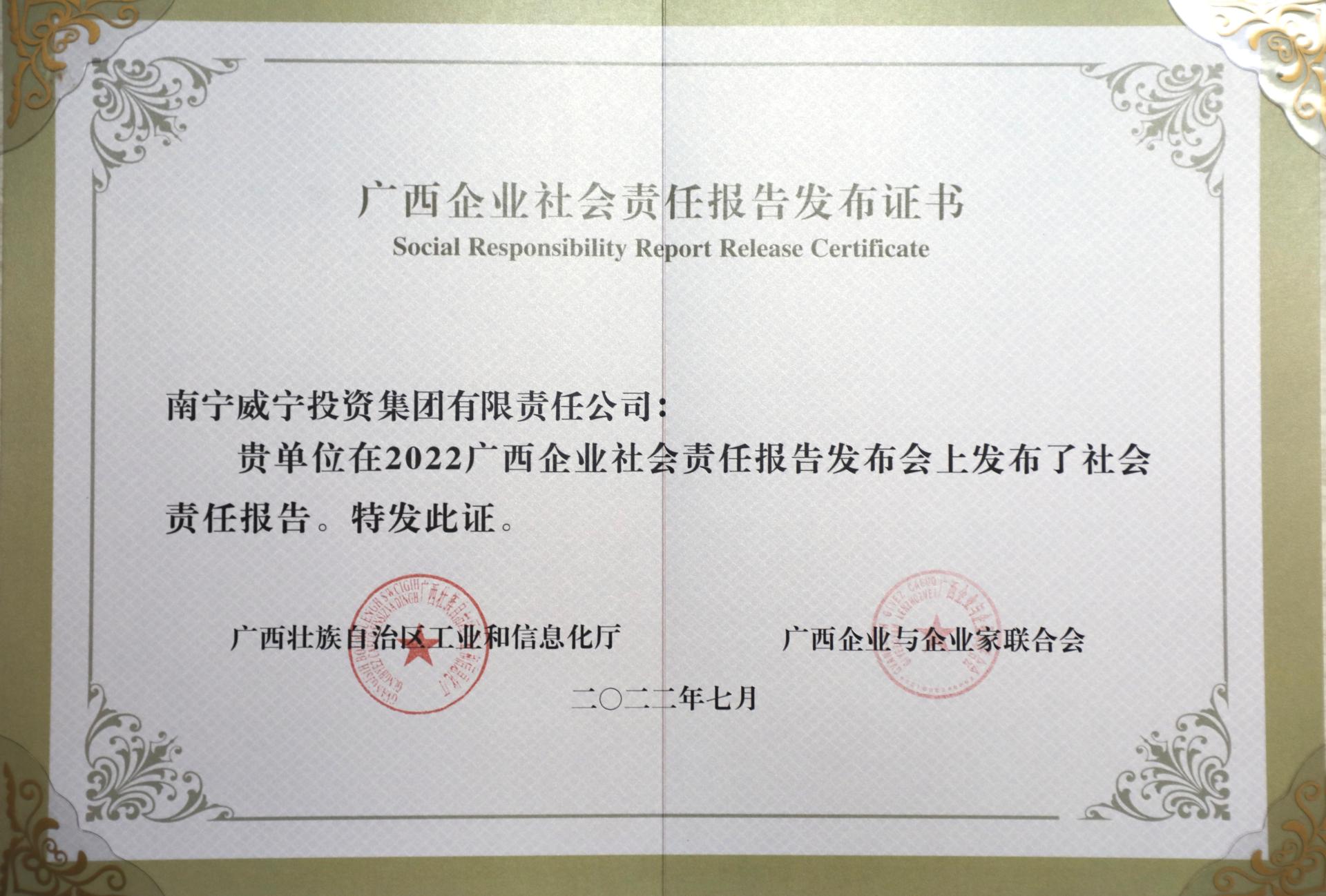 圖 廣西企業(yè)社會(huì)責(zé)任報(bào)告發(fā)布證書(shū)