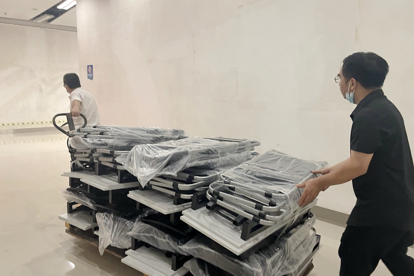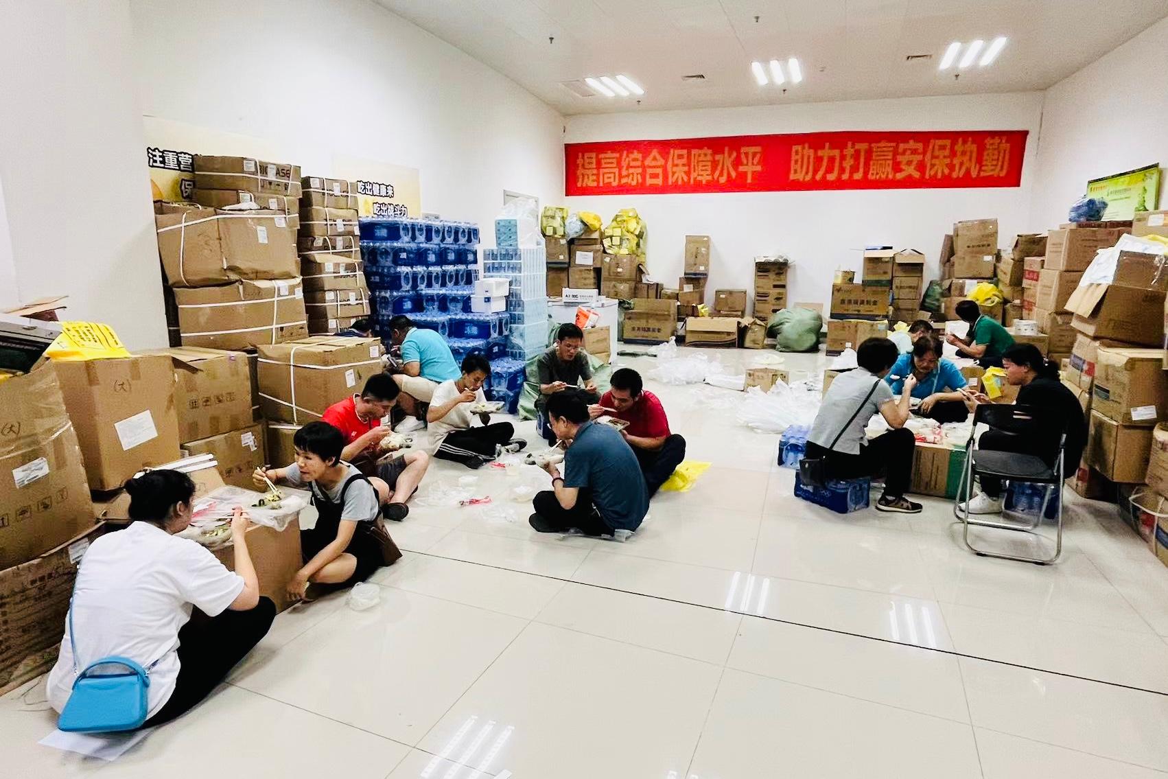 一個(gè)計(jì)算器,是細(xì)致嚴(yán)謹(jǐn)。“89、90、91,數(shù)對(duì)了!這車一共91頂帳篷!”“大家注意一下,桌子是兩張一組,椅子是三張一組,用透明膠帶捆綁好”,在物資籌備現(xiàn)場(chǎng),公司會(huì)計(jì)手持計(jì)算器認(rèn)真地清點(diǎn)著數(shù)目,面對(duì)繁重的任務(wù)、緊張的時(shí)間,威寧人各司其職,身忙心不亂,當(dāng)發(fā)現(xiàn)桌椅物資不足時(shí),威寧人充分展現(xiàn)出系統(tǒng)內(nèi)互幫互助的友愛(ài)精神,威寧酒店公司與威寧文體公司通力配合,沉著應(yīng)對(duì),采取緊急聯(lián)系供貨商連夜補(bǔ)貨、向其他公司調(diào)借等措施,完成桌子、凳子等物資缺口填補(bǔ)900余件。在緊張忙碌的“加班加點(diǎn)”中趕出效率,保障質(zhì)量!