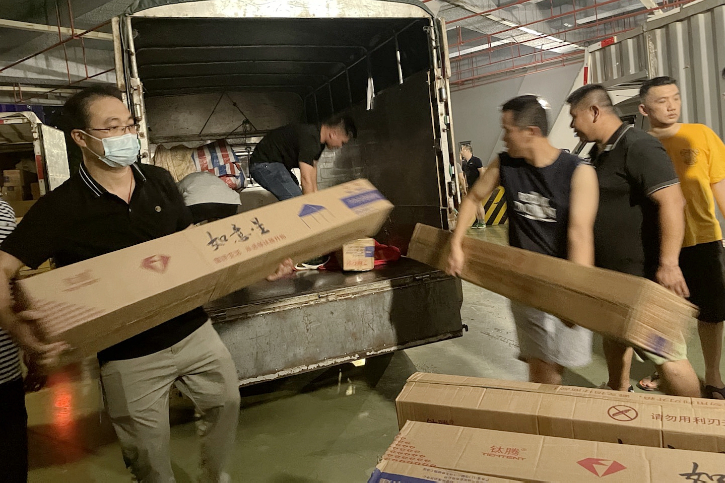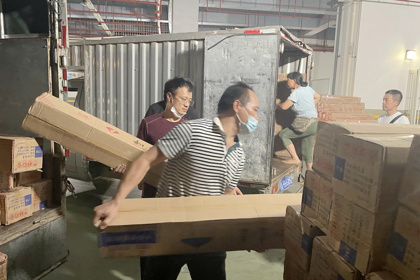 一滴滴汗水,是責(zé)任擔(dān)當(dāng)。“來(lái),擦擦汗,繼續(xù)加油干?!眲傂锻甓攷づ竦睦宵h員巫恒軍擦掉流入眼里產(chǎn)生刺痛的汗水,繼續(xù)投入到緊急工作中?,F(xiàn)場(chǎng)緊張而忙碌,大家默契配合,在悶熱的空氣里汗流浹背,但是手上的動(dòng)作卻越來(lái)越熟練,搬運(yùn)的勁頭絲毫不減。經(jīng)過(guò)近10個(gè)小時(shí)的連續(xù)奮戰(zhàn),19日凌晨2:50,隨著最后一臺(tái)物資配送車完成裝貨出發(fā),400多個(gè)核酸檢測(cè)點(diǎn)的物資配送圓滿完成。