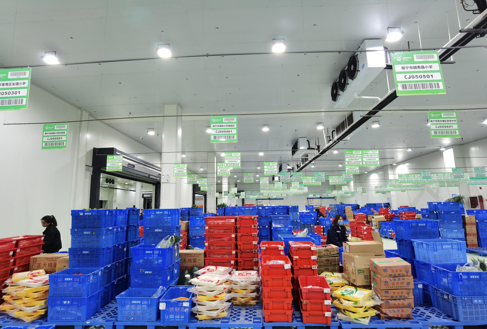 五象配送基地食材分揀完畢準(zhǔn)備配送