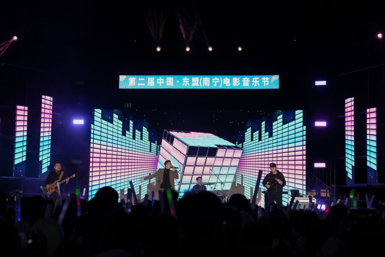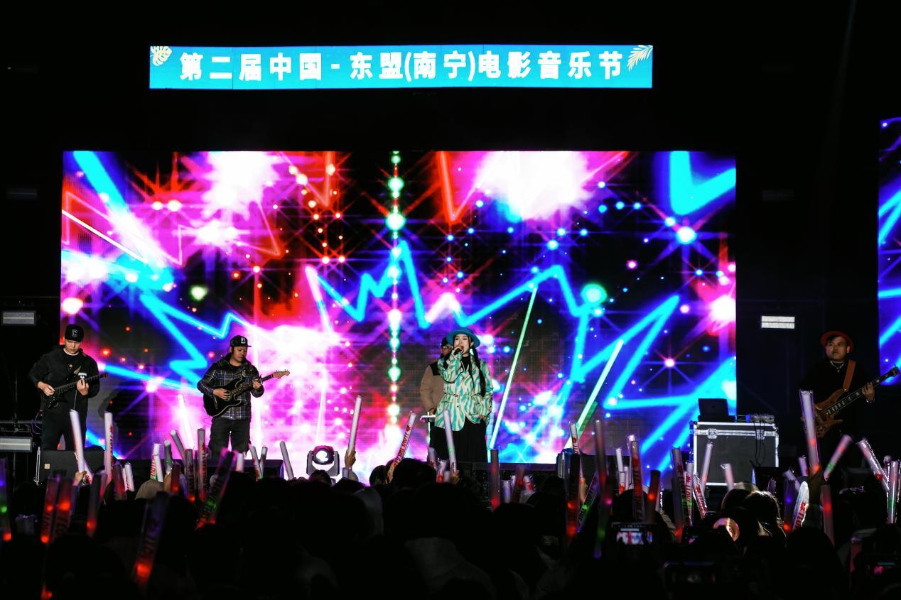 唱響冬日歡歌,共享音樂盛宴。12月14—15日,第二屆中國—東盟(南寧)電影音樂節(jié)在南寧學(xué)院、南寧職業(yè)技術(shù)大學(xué)完美開唱,兩所高校超一萬名學(xué)生參與。本屆音樂節(jié)以電影文化為主題,通過邀請區(qū)內(nèi)專業(yè)音樂組合、樂隊,攜手高校音樂愛好者,翻唱經(jīng)典電影歌曲、流行歌曲(熱歌)、本土特色原創(chuàng)音樂作品、部分東盟國家歌曲,為高校學(xué)子帶來融合唱跳、流行、說唱、搖滾等多樣化風(fēng)格的演出,以歌會友、以歌傳情,相比去年,在內(nèi)容呈現(xiàn)上不僅彰顯更多電影元素,還充滿了濃濃的東盟風(fēng)情,Miya樂團(tuán)帶來的《泰friend》出自新民歌大會,將泰語和壯語以新民歌形式融合呈現(xiàn),表達(dá)了中國和東盟國家的深厚友誼,給學(xué)生觀眾帶來更加直觀、豐富的電影音樂文化體驗(yàn),以此促進(jìn)不同文化之間的交流和融合。