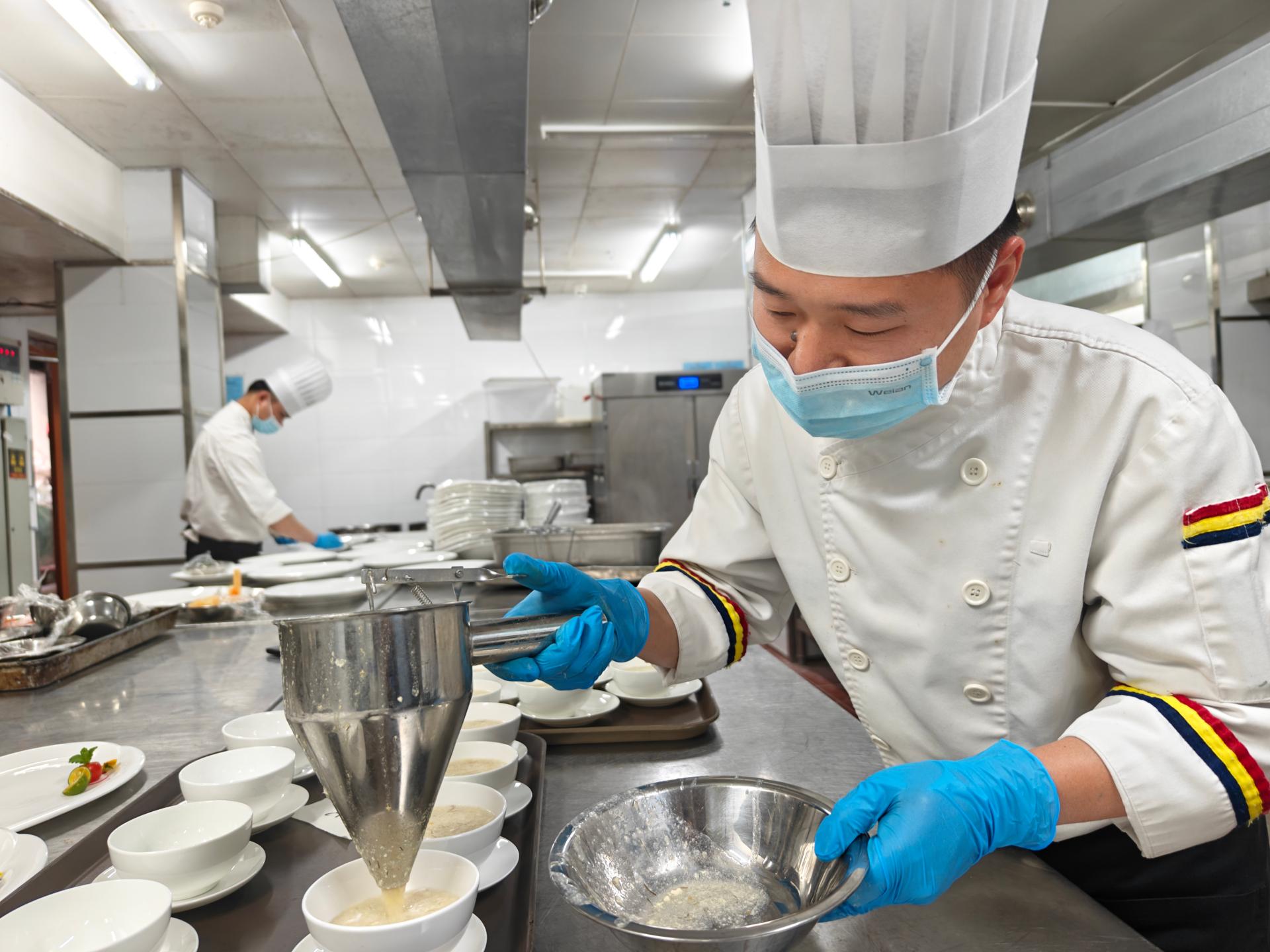 在客房服務(wù)方面,客房服務(wù)人員每日不僅將房間打掃得一塵不染,還在細(xì)節(jié)處融入關(guān)懷,通過(guò)美食打印機(jī),使用可可粉定制活動(dòng)的名稱(chēng)及祝福,別具一格,為賓客們營(yíng)造典雅舒適的居住環(huán)境,以及體驗(yàn)賓至如歸的服務(wù)。豐富多元的餐飲服務(wù)。山莊廚師團(tuán)隊(duì)根據(jù)參會(huì)賓客的飲食風(fēng)俗,精心打造了菜單,既有特色的經(jīng)典桂菜,展現(xiàn)本地獨(dú)特風(fēng)味,又有東南亞各地的特色美食,滿(mǎn)足賓客們多樣的味蕾需求。在會(huì)議場(chǎng)地布置方面,山莊宴會(huì)部服務(wù)人員加班加點(diǎn),嚴(yán)格按照會(huì)議要求,短時(shí)間內(nèi)完成會(huì)議室的桌椅擺放、音響燈光調(diào)試等工作,確保會(huì)議按時(shí)順利召開(kāi)。貼心周到的宴會(huì)服務(wù)。利用廣西的非遺特色壯錦、繡球、銅鼓、麼乜等元素裝飾桌面;以及通過(guò)美食打印機(jī)為宴席增光添彩,將廣西的“老友”文化融入到美食中,讓賓客在享用美食的同時(shí),也能向中外賓展示廣西的傳統(tǒng)文化。