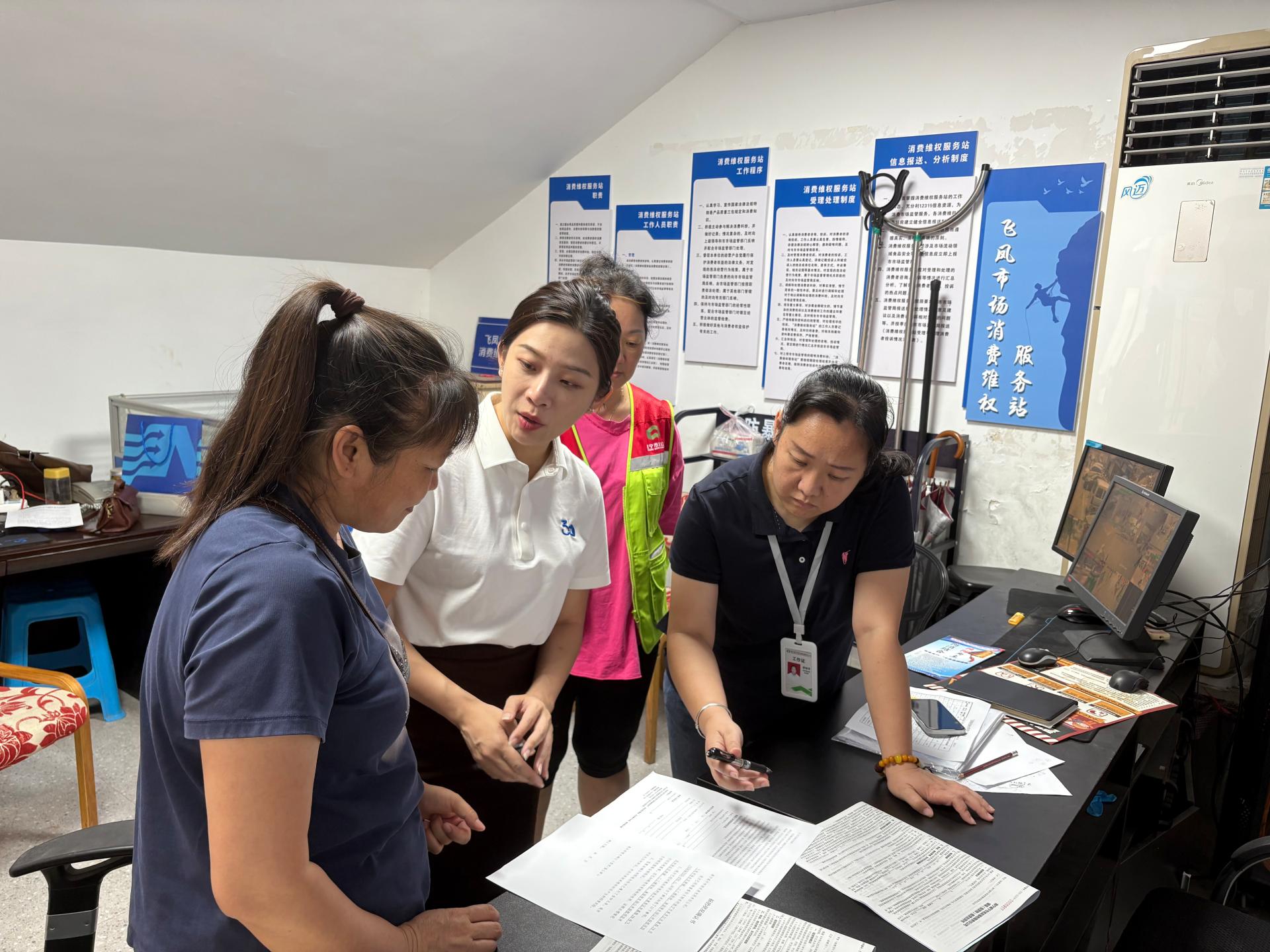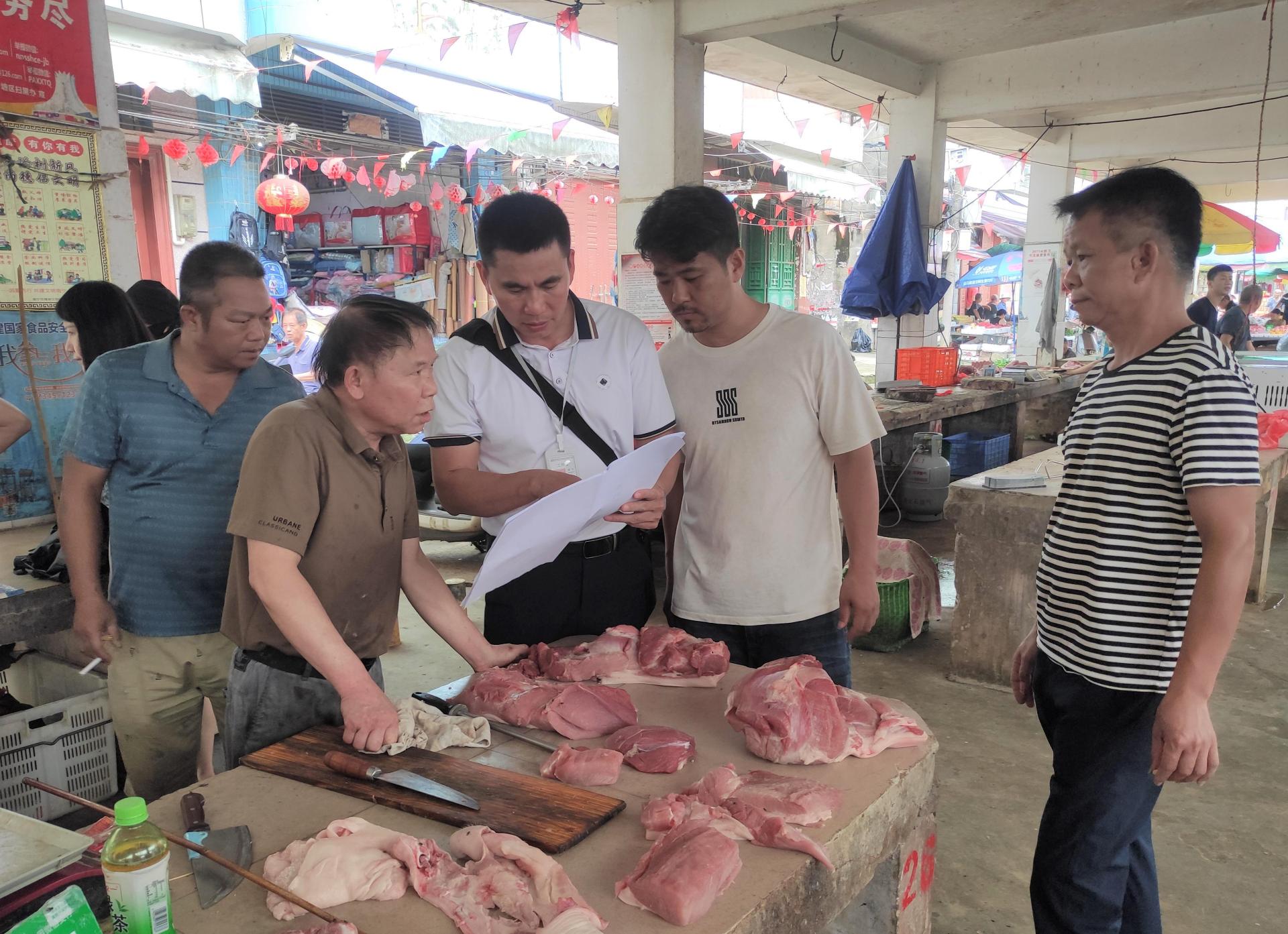 工作人員到富庶市場給經(jīng)營戶講解政策