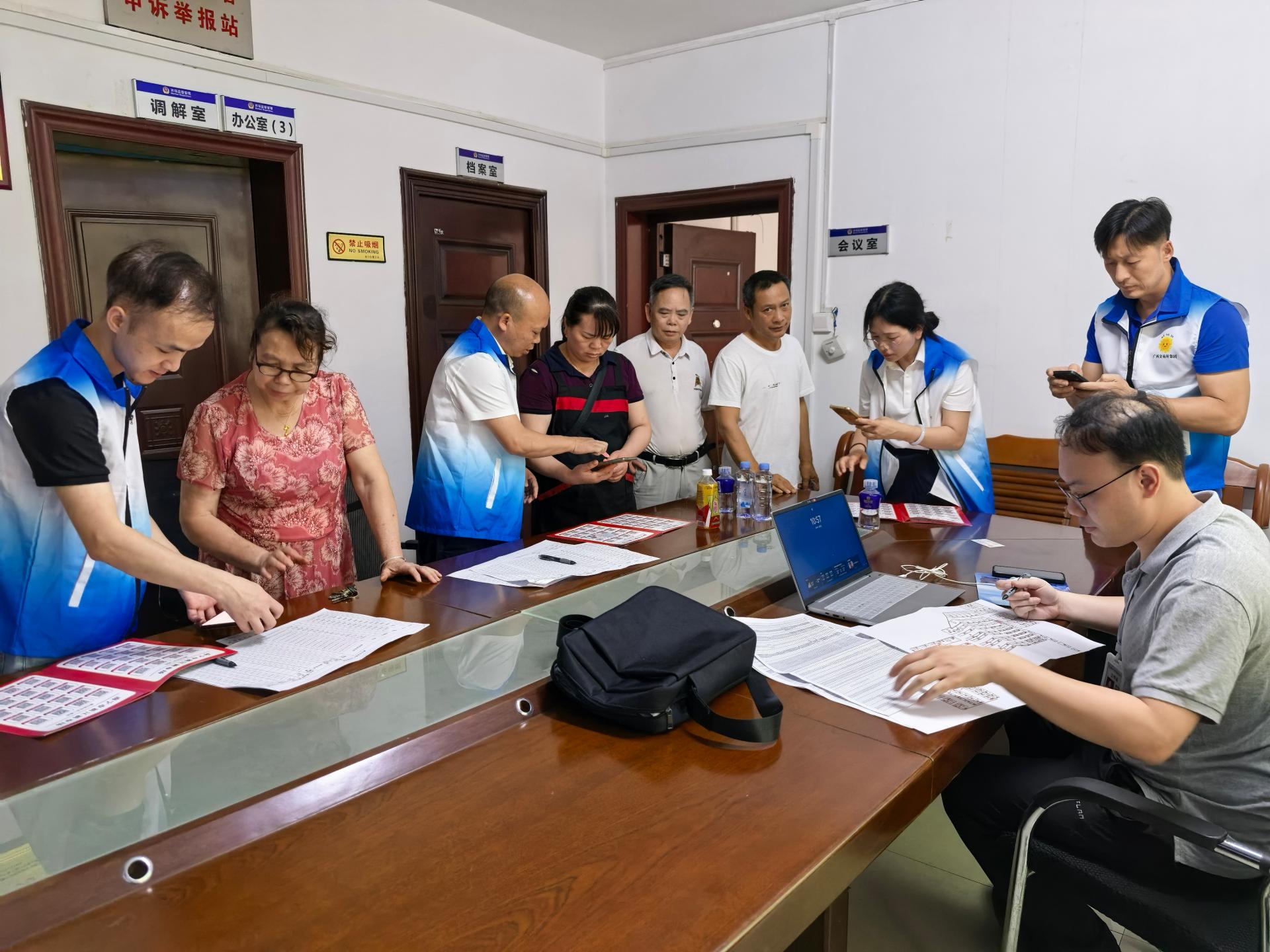 工作人員指導(dǎo)經(jīng)營戶報名