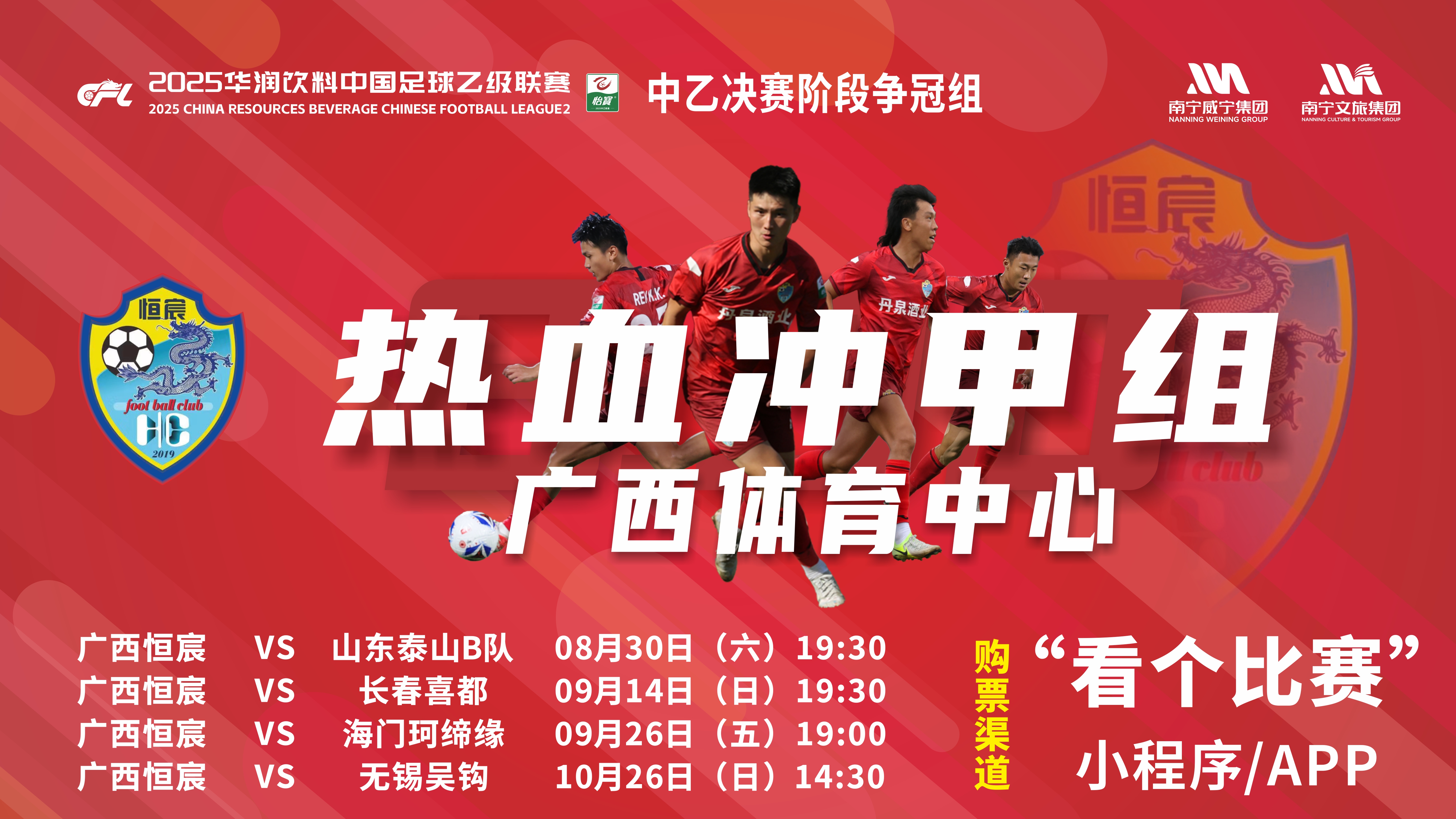 廣西恒宸中乙爭冠組下一場主場比賽將于9月14日19時30分在廣西體育中心迎戰(zhàn)長春喜都!目前門票預(yù)售已開啟,在“看個比賽”小程序/APP即可購票,讓我們繼續(xù)走進賽場,為廣西恒宸加油,見證更多主場榮耀時刻!