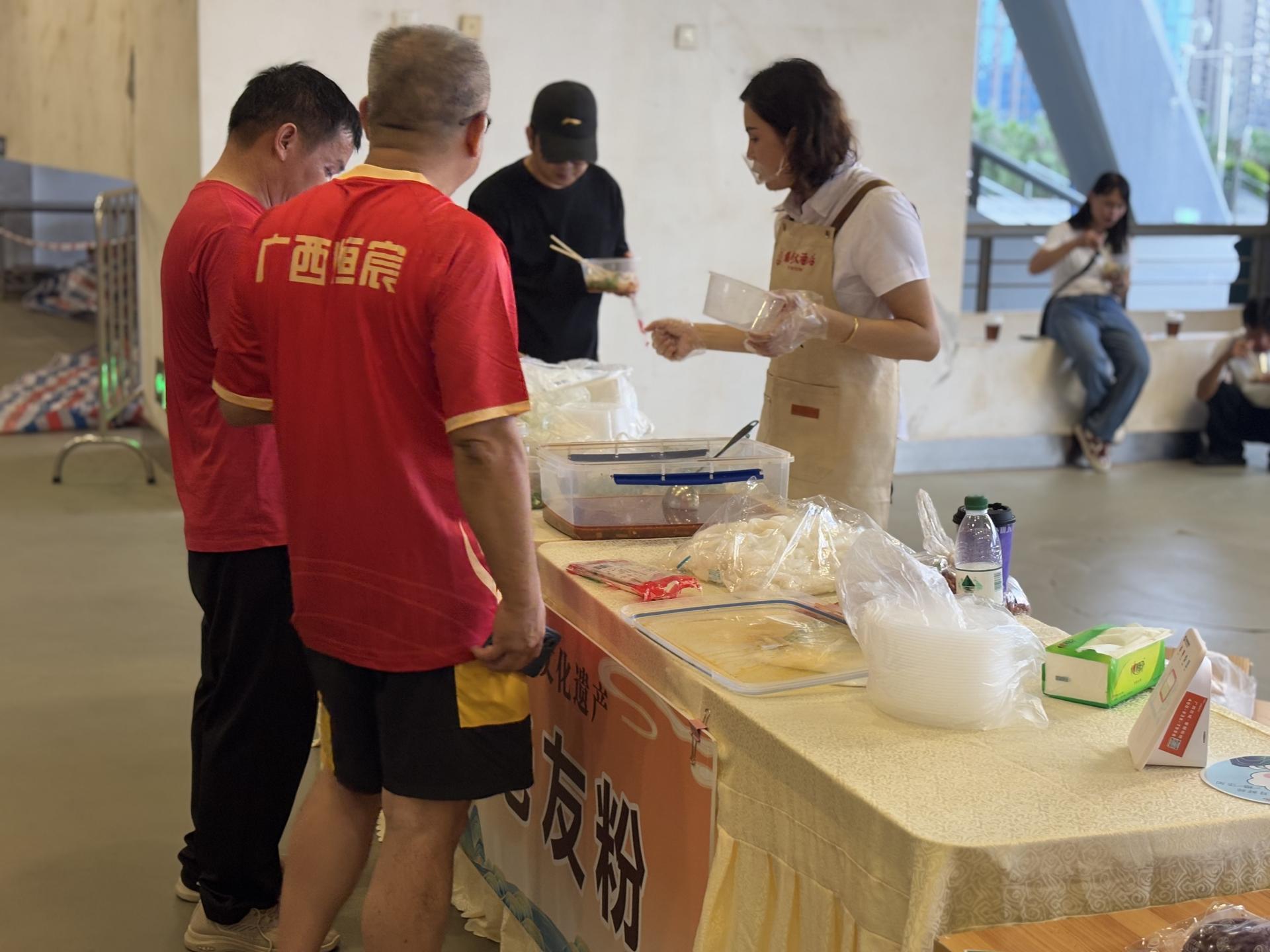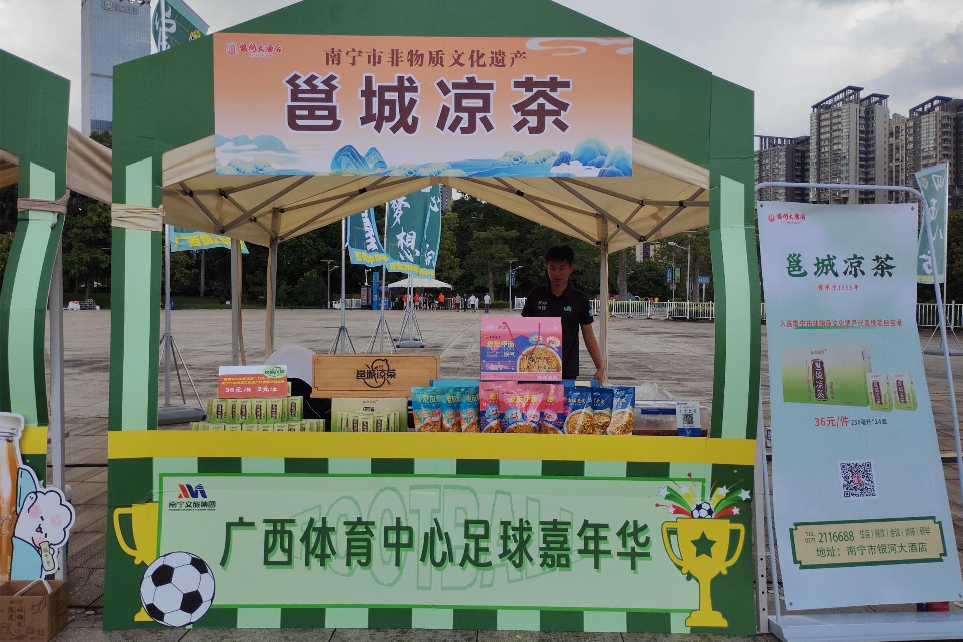 南寧文旅集團在廣西體育中心北廣場舉辦足球市集,旗下銀河公司非遺品牌“邕城涼茶”開設(shè)了飲品售賣點,成為了賽場外的 “能量補給站”,邀請球迷參與海報打卡、非遺展示等環(huán)節(jié),市集現(xiàn)場還可以購買到老友粉伴手禮盒,既滿足了萬余名球迷的飲品需求,又讓大家在觀賽間隙感受到了非遺文化的魅力,更彰顯了企業(yè)服務(wù)社會、傳承文化的責(zé)任擔(dān)當(dāng)。