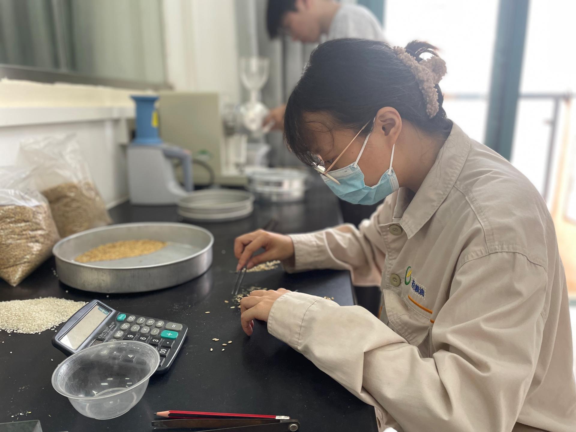 品控員檢測入庫稻谷質(zhì)量
