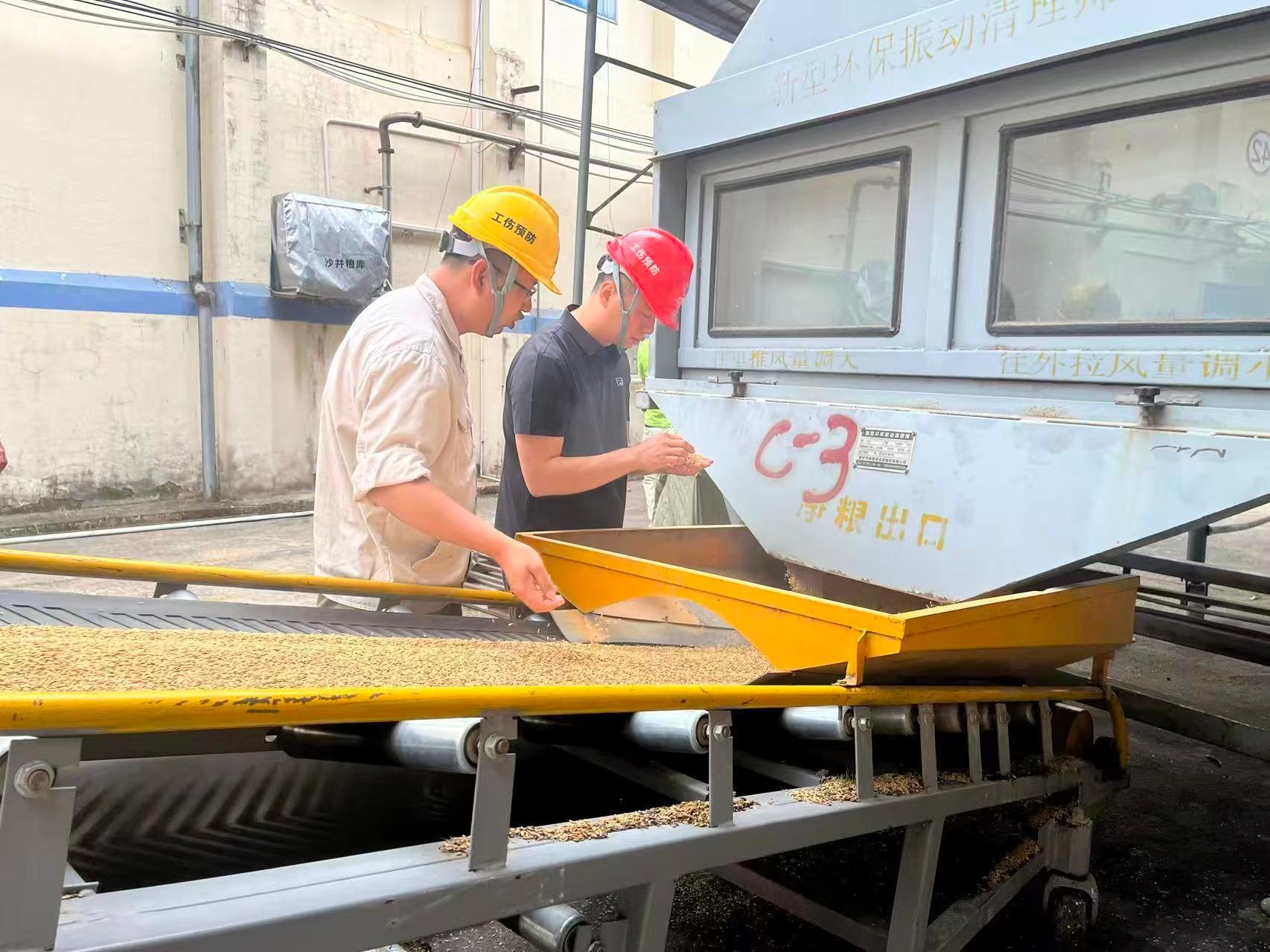 夏糧入庫工作小組成員現(xiàn)場跟進入庫情況