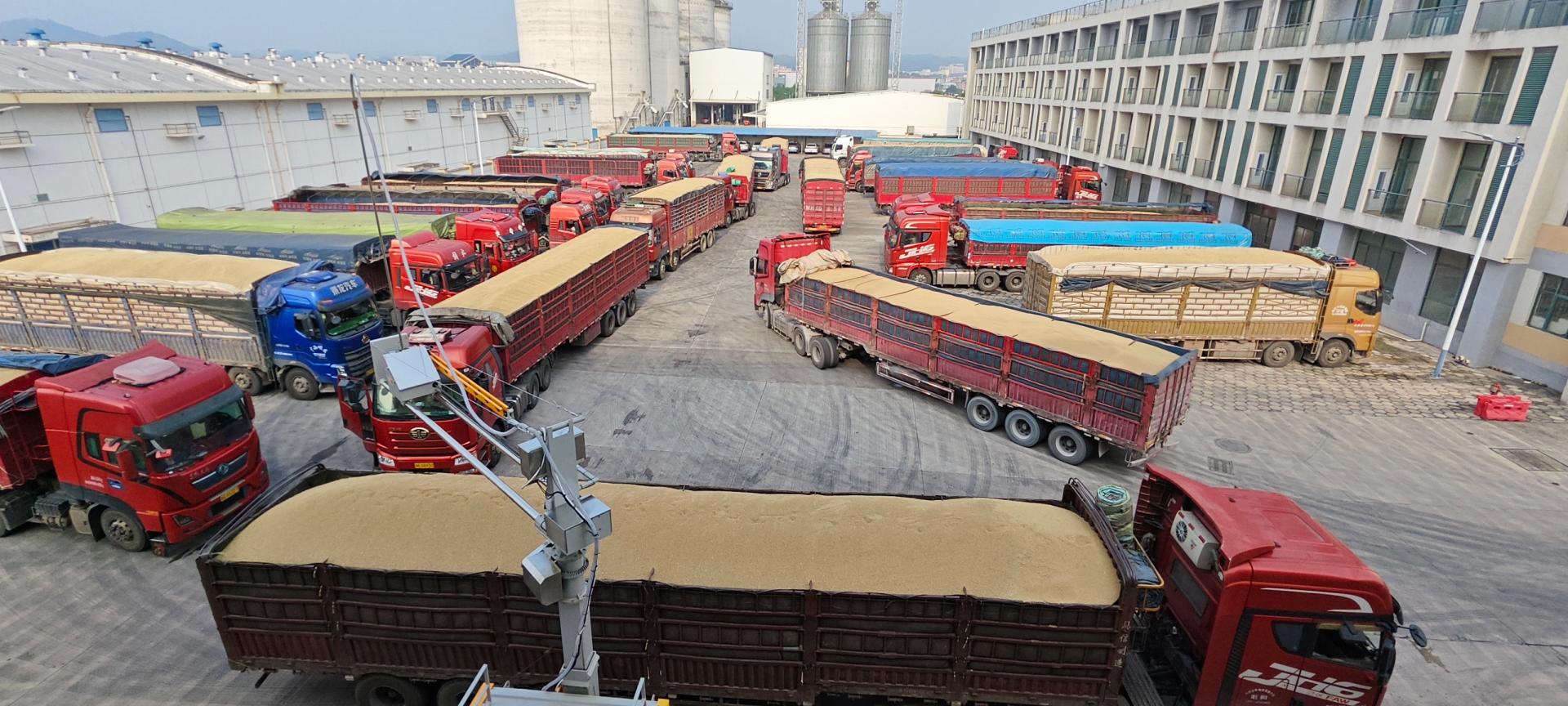 夏糧入庫期間來糧車輛絡繹不絕