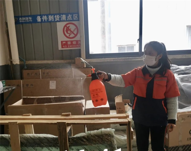 南寧百貨倉管員對(duì)到貨物品先消毒再入庫