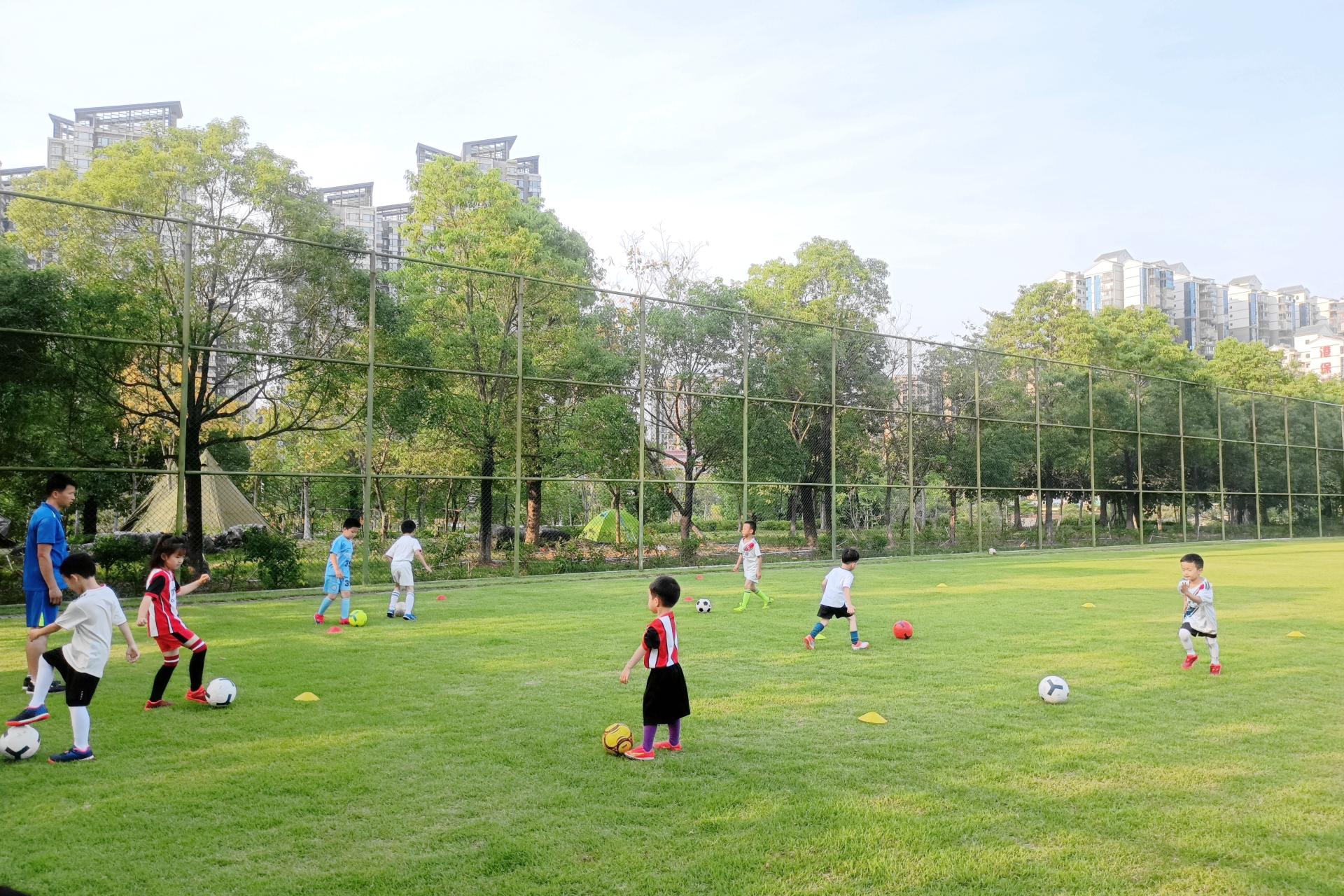 綠草如茵的足球訓(xùn)練場(chǎng)