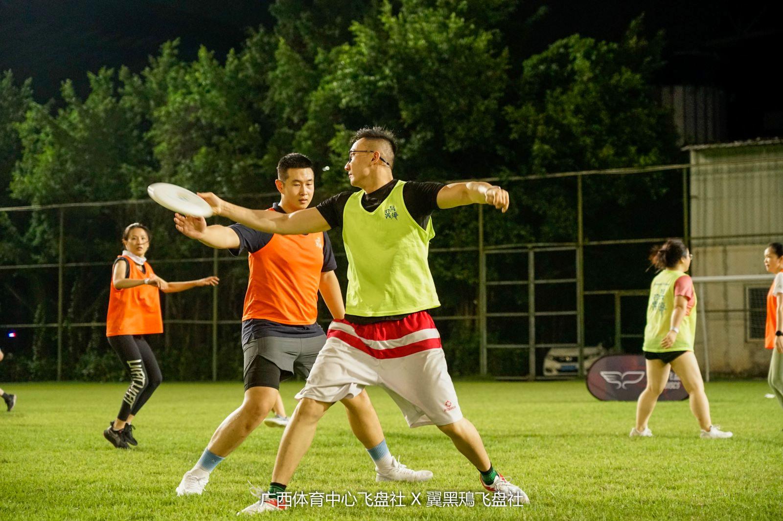 在專場飛盤賽中,各位新手高手同場競技,在綠茵場上手持飛盤,拋出一道道弧線,互相傳接配合、跑位攻防,共同感受這項新潮流的健身運動。