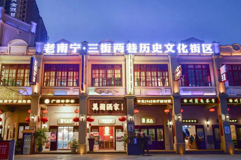 威邕城市運(yùn)營(yíng)開展頭腦風(fēng)暴,創(chuàng)新策劃舉辦活動(dòng)?!傍櫢ER門邕城盛市”三街兩巷二期新街開放暨倉(cāng)西門揭幕儀式系列活動(dòng)、三街兩巷新春嘉年華沉浸式國(guó)風(fēng)系列活動(dòng)、二期開街活動(dòng)暨首屆國(guó)風(fēng)文化節(jié)等大型主題活動(dòng)共計(jì)10余次,得到中央廣播電視總臺(tái)、廣西日?qǐng)?bào)、廣西電視臺(tái)、南寧市主流媒體等廣泛報(bào)道,獲得社會(huì)各界與廣大游客的廣泛關(guān)注。國(guó)慶期間,“三街兩巷首屆國(guó)風(fēng)文化節(jié)”活動(dòng),游客接待量超70萬(wàn)人次,同比2021年國(guó)慶假期增長(zhǎng)40%,營(yíng)業(yè)額超5000萬(wàn)元,同比2021年國(guó)慶假期增長(zhǎng)317%。主題活動(dòng)的成功舉辦,促進(jìn)了街區(qū)人流量、消費(fèi)量“雙量”提升,極大的提升了商戶的經(jīng)營(yíng)信心,促進(jìn)了招商工作的推進(jìn)。(圖5.三街兩巷2022年國(guó)慶活動(dòng))