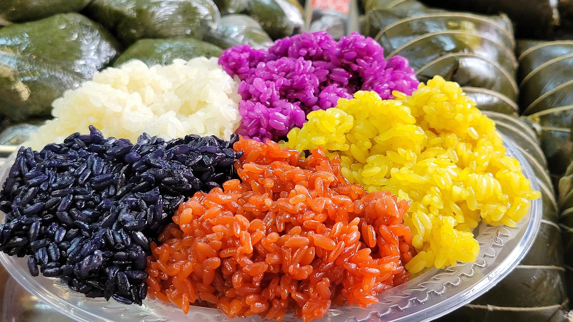 五色糯米飯作為壯族的特色美食,可謂家喻戶(hù)曉,植物清香四溢撲鼻,五彩繽紛、晶瑩剔透,讓人垂涎欲滴。