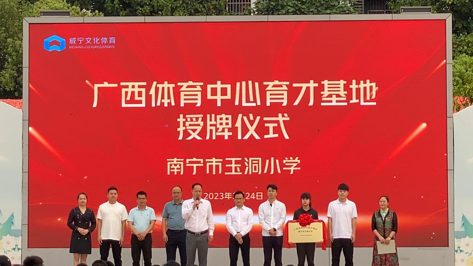 3月20日、24日,“廣西體育中心育才基地”授牌儀式分別在五象小學(xué)、玉洞小學(xué)舉行。威寧文體公司總經(jīng)理羅姍馨、副總經(jīng)理林國(guó)城,五象小學(xué)校長(zhǎng)廖文婷、副校長(zhǎng)岑笑,玉洞小學(xué)校長(zhǎng)周日新、副校長(zhǎng)林秀艷等領(lǐng)導(dǎo)出席授牌儀式,各校體育組教師、全校學(xué)生共同見證了這一時(shí)刻。