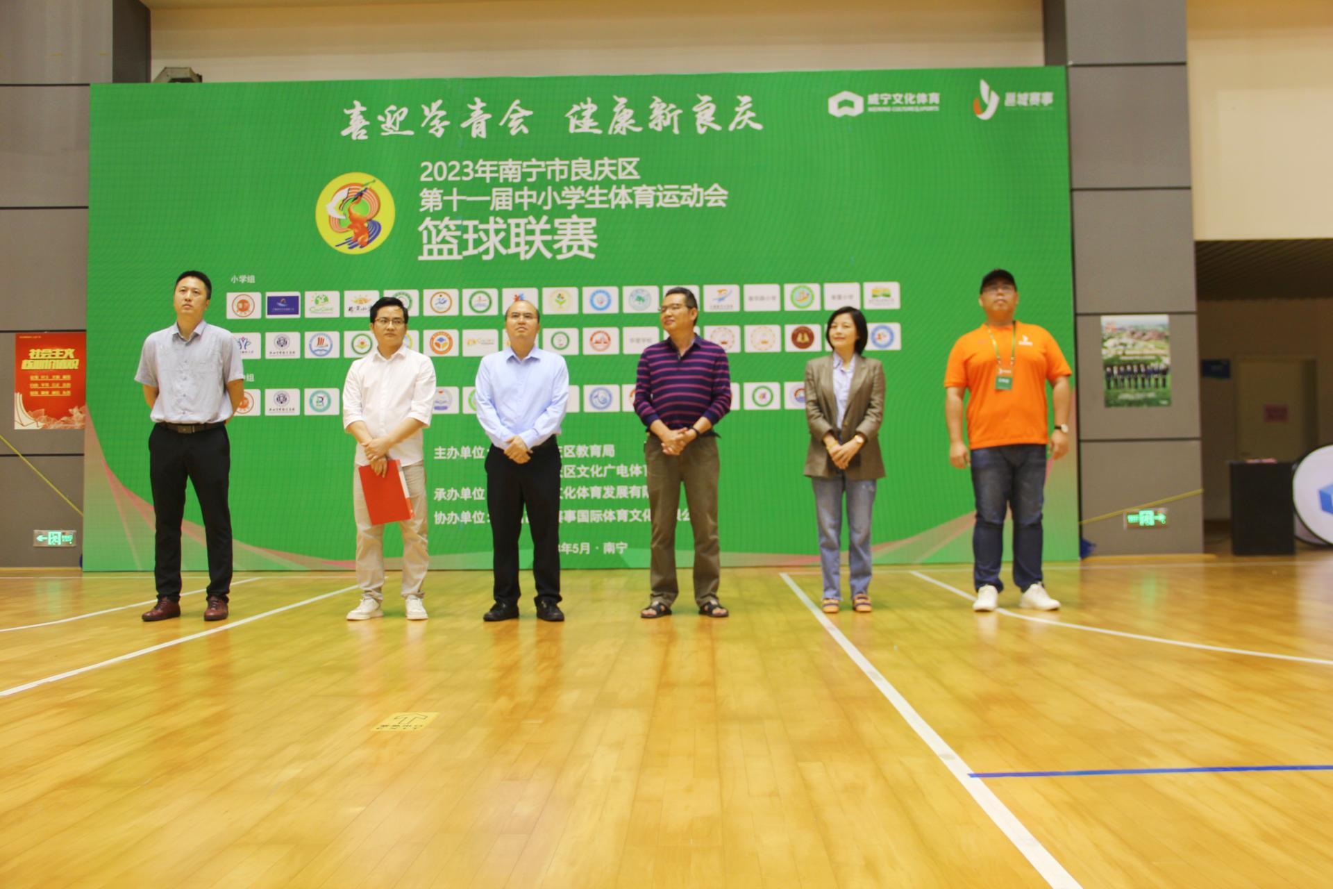 5月8日,由南寧市良慶區(qū)教育局、南寧市良慶區(qū)文化廣電體育和旅游局主辦、南寧威寧文化體育發(fā)展有限公司承辦的2023年南寧市良慶區(qū)第十一屆中小學(xué)生體育運(yùn)動(dòng)會(huì)籃球聯(lián)賽開幕式在廣西體育中心籃球中心舉行。南寧市良慶區(qū)教育局副局長(zhǎng)潘波、南寧市良慶區(qū)文化廣電體育和旅游局副主任科員盧學(xué)能、南寧威邕城市運(yùn)營(yíng)集團(tuán)有限公司副總經(jīng)理林國(guó)城、廣西耀象文化傳播有限責(zé)任公司副總經(jīng)理劉吉堯、廣西邕城賽事國(guó)際體育文化有限公司總經(jīng)理羅熹等領(lǐng)導(dǎo)和嘉賓出席開幕儀式。潘波副局長(zhǎng)致辭并宣布籃球聯(lián)賽開幕,運(yùn)動(dòng)員代表、裁判員代表莊嚴(yán)宣誓。