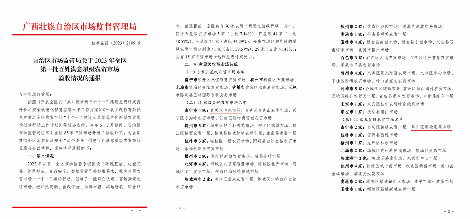 近日,威寧資產(chǎn)經(jīng)營集團(tuán)所屬飛鳳市場、那元果菜市場榮獲自治區(qū)市場監(jiān)督管理局授予的全區(qū)第一批“百姓滿意星級農(nóng)貿(mào)市場”榮譽(yù)稱號。其中,飛鳳市場獲評四星級農(nóng)貿(mào)市場,那元果菜市場獲評三星級農(nóng)貿(mào)市場。
