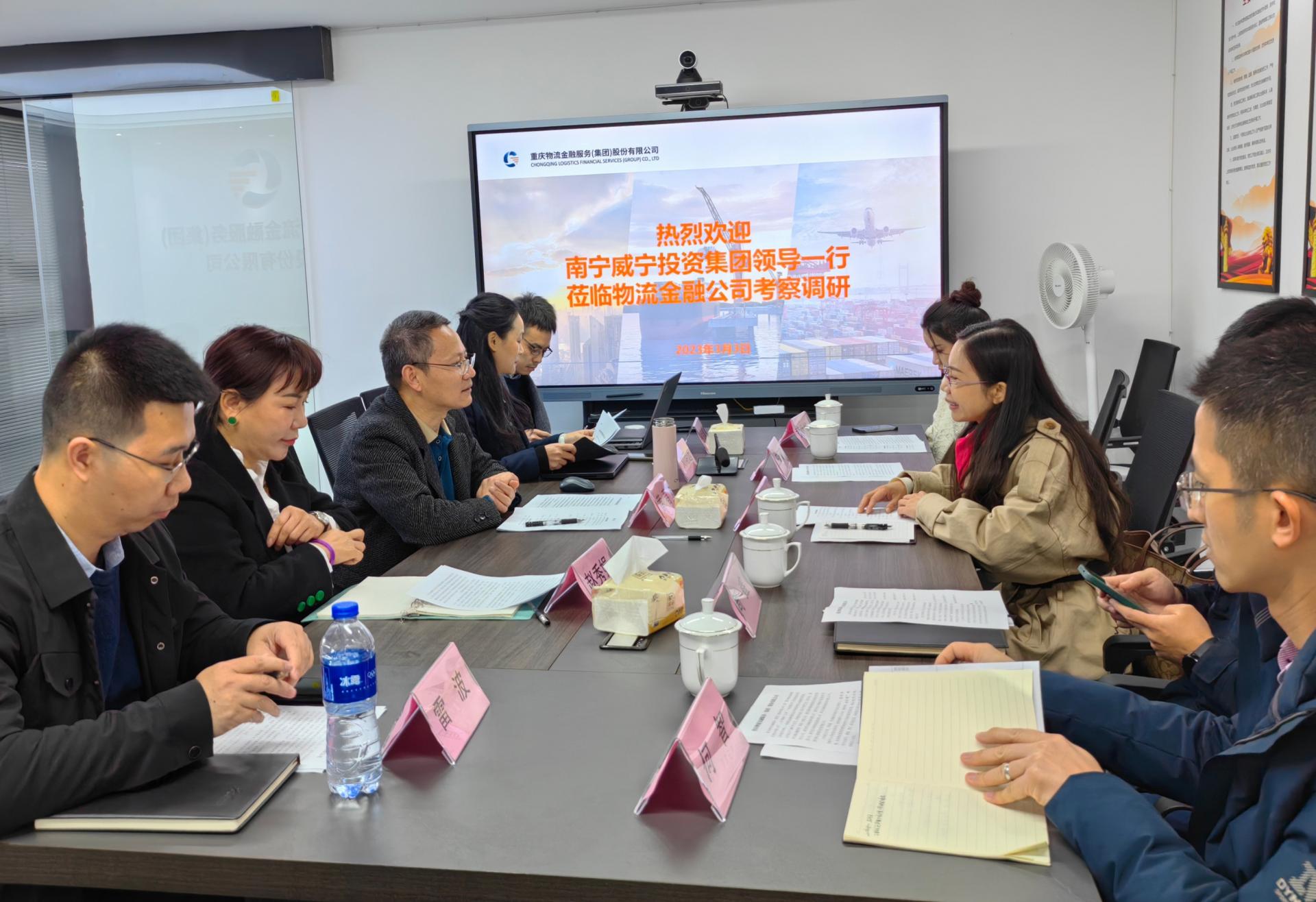 近日,南寧威寧集團(tuán)總會(huì)計(jì)師郭日民帶隊(duì)赴重慶交運(yùn)優(yōu)鏈云食城供應(yīng)鏈有限公司、重慶物流金融服務(wù)集團(tuán)小額貸款有限公司考察。