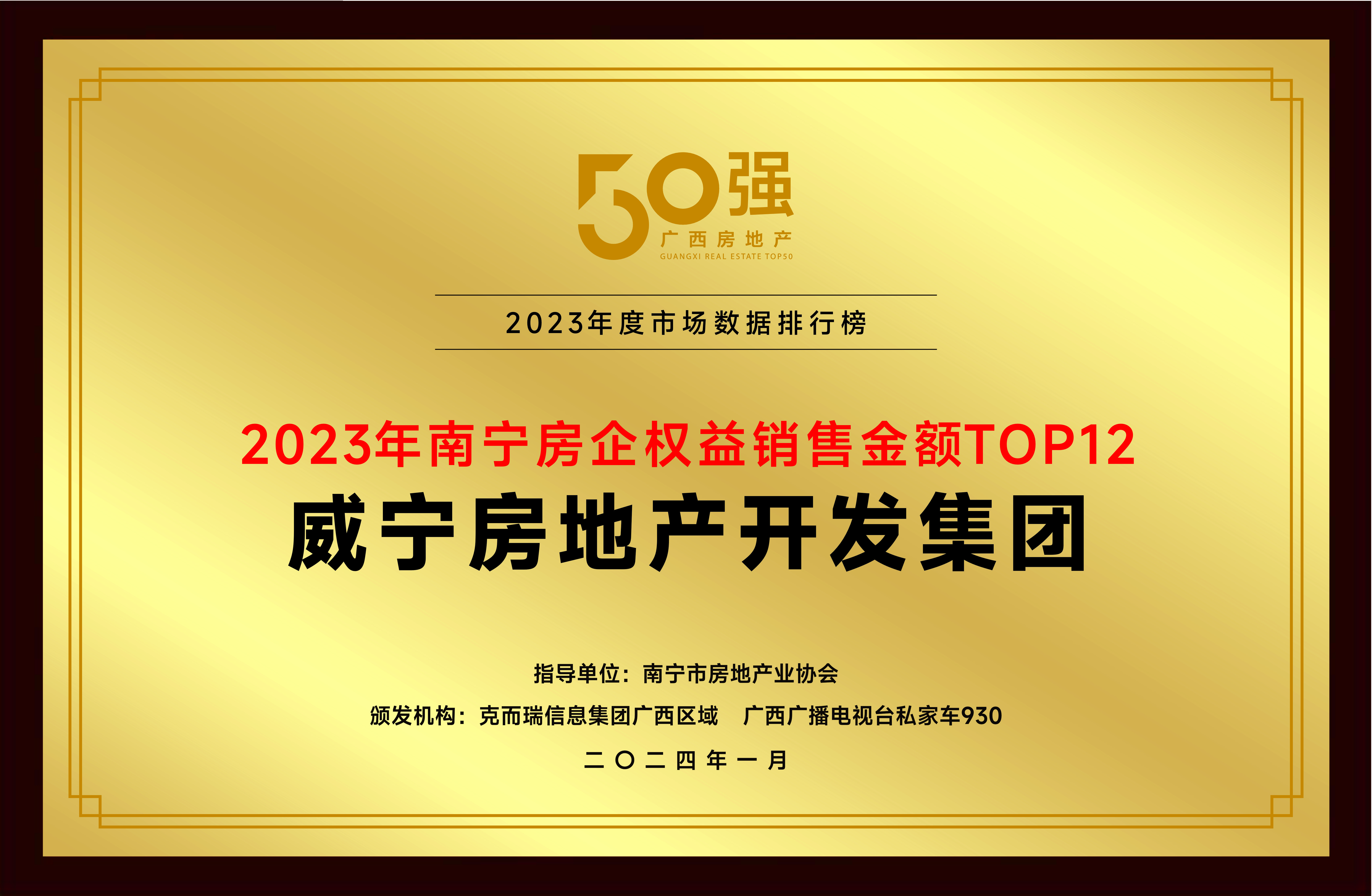 作為廣西本土國(guó)企,在過(guò)去一年,公司憑借自身項(xiàng)目布局和運(yùn)營(yíng)優(yōu)勢(shì),產(chǎn)品力和交付力得到市場(chǎng)認(rèn)可,為市場(chǎng)和購(gòu)房者注入信心和活力。公司以穩(wěn)健的實(shí)力,榮獲本次盛典行業(yè)“2023年廣西房地產(chǎn)本土國(guó)企全口徑、權(quán)益銷售金額TOP5”“2023年南寧房企權(quán)益銷售金額TOP12”“2023年廣西地產(chǎn)綜合運(yùn)營(yíng)實(shí)力企業(yè)大獎(jiǎng)”等獎(jiǎng)項(xiàng)。