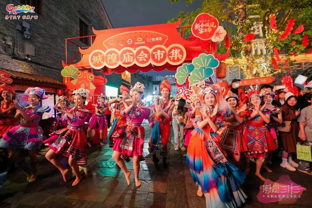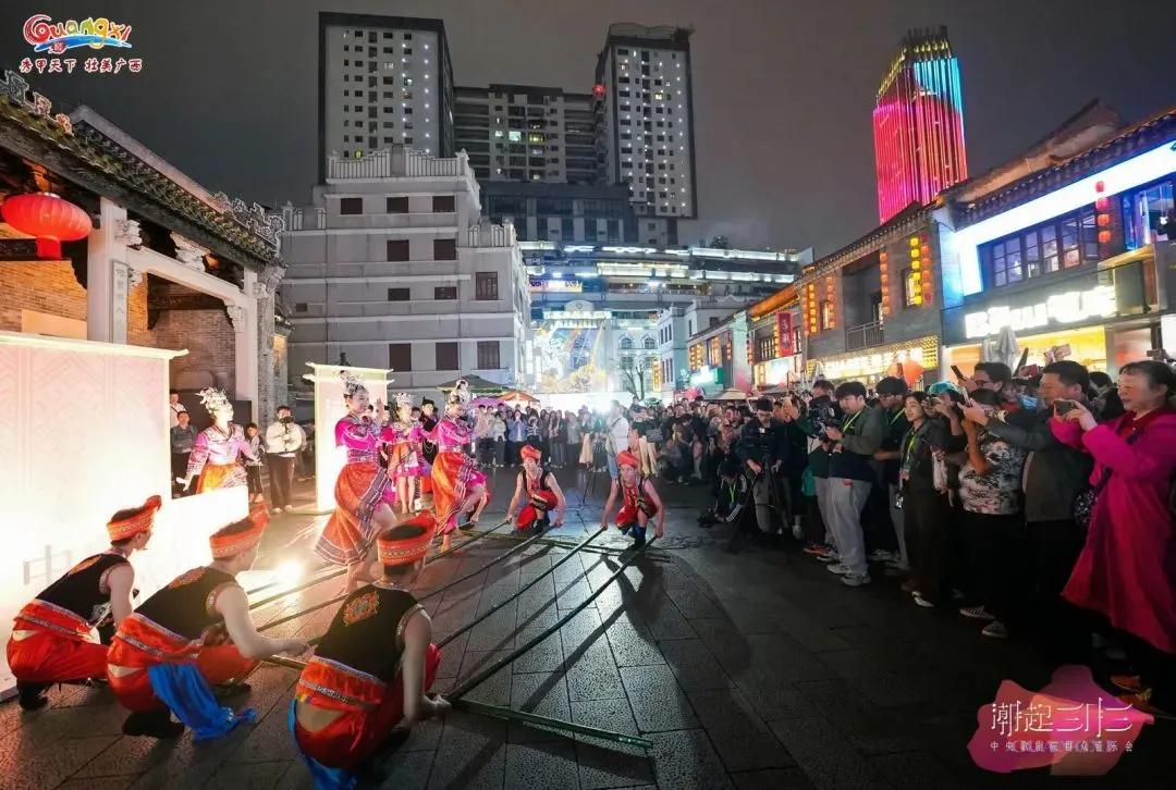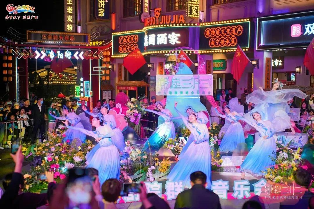 作為廣西“三月三”系列群眾文化活動(dòng)之一,音樂(lè)會(huì)現(xiàn)場(chǎng)還設(shè)置了“山歌迎客”“民歌新唱”“花式竹竿舞”“科目三舞蹈”“廣西有戲”等豐富的民俗文化展示體驗(yàn)活動(dòng)。