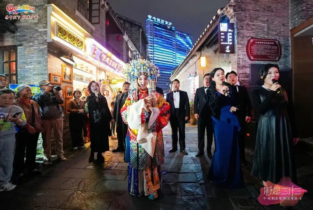 歌劇悠揚(yáng)、民歌嘹亮,一場(chǎng)歌劇藝術(shù)與傳統(tǒng)音樂(lè)的碰撞在邕州古城·三街兩巷激情上演。2024年4月6日晚,由中央歌劇院薛玉強(qiáng)、王霄云等多位國(guó)家一級(jí)演員和廣西本土藝術(shù)家?guī)?lái)的“潮起三月三”中央歌劇院群眾音樂(lè)會(huì)在邕州古城·三街兩巷歷史文化街區(qū)舉行,為市民游客獻(xiàn)上了一場(chǎng)別開(kāi)生面的街頭音樂(lè)演出?;顒?dòng)由廣西壯族自治區(qū)文化和旅游廳、中央歌劇院聯(lián)合主辦,南寧市文化廣電和旅游局承辦。