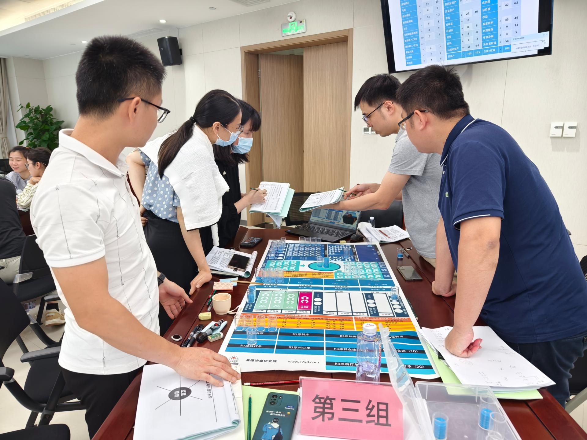第一期培訓課程以企業(yè)經(jīng)營管理為主題。在9日當天《管理者的“X項修煉”——管理者管理認知和技能破局之道》課程中,婁萌教授從管理認知重塑、管理自我效能提升、管理技能三個方向出發(fā)介紹了管理者的角色認知和能力提升方向,博古通今、金句頻出,通過生動精彩的講授引發(fā)了全體學員的強烈共鳴。5月10日《步步為贏——企業(yè)經(jīng)營管理敏銳度沙盤實訓》課程中,李俊老師以數(shù)智系統(tǒng)和沙盤模型的方式模擬企業(yè)在3年中真實的經(jīng)營環(huán)境,學員們分成六組以六家獨立的公司模擬運營企業(yè)決策、市場競爭、生產(chǎn)制造、財務管理等環(huán)節(jié),讓學員能夠跳出自己所在的崗位看到企業(yè)經(jīng)營管理的各個模塊。學員們在體驗中洞察“經(jīng)營”,在實戰(zhàn)中學習“管理”,一天下來,各個“總經(jīng)理”“財務總監(jiān)”“運營總監(jiān)”們雖然燒腦卻大呼“過癮”!