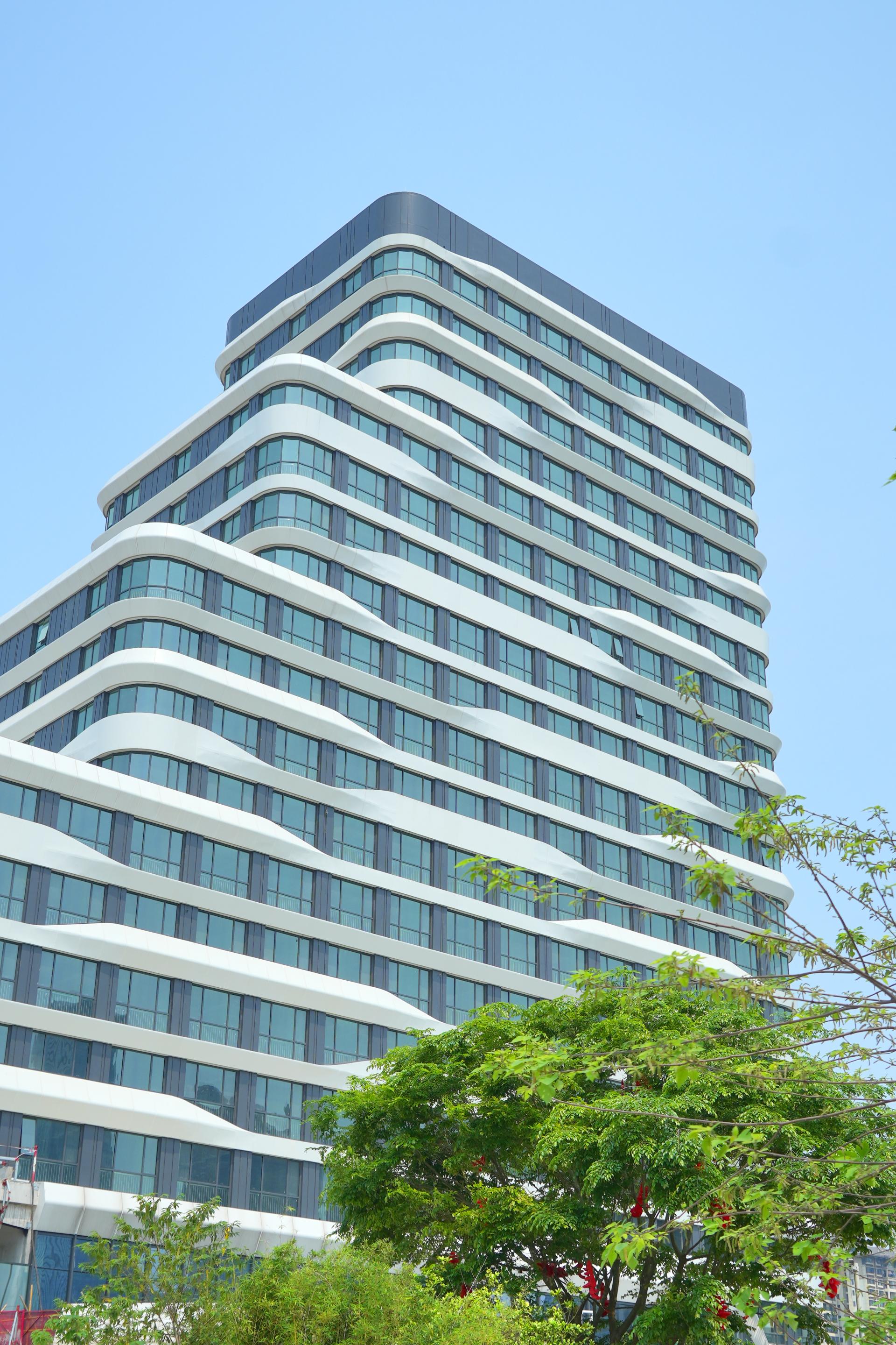 驗(yàn)收當(dāng)天陽光明媚,在藍(lán)天白云映襯下的東盟威寧文創(chuàng)中心,屹立于廣西文化藝術(shù)中心之側(cè),兩處建筑交相輝映。項(xiàng)目各個(gè)樓棟綿延相連,猶如不斷延伸的山巒,外立面上白色海浪式的設(shè)計(jì),讓人賞心悅目,引來市民游客紛紛駐足拍照打卡。