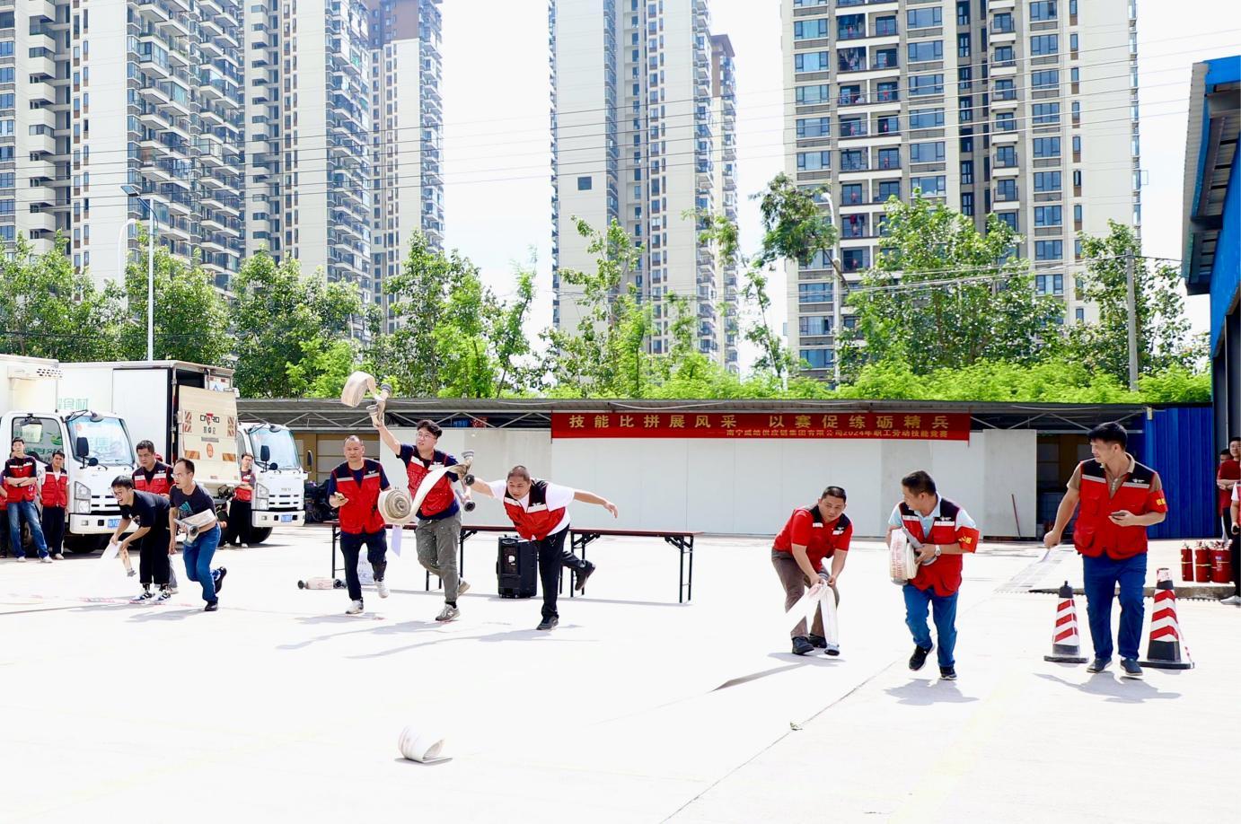 率先開始的是消防水帶連接項目的比賽,參加本次競賽的隊伍需預(yù)演火災(zāi)出現(xiàn)后水槍、水帶拼接及出水準(zhǔn)備。比賽要求2名參賽隊員相互配合,將2根水帶和2個水槍槍頭依次組裝完成,并將水帶拉直鋪平后舉手示意,比賽結(jié)束。賽后需迅速拆下水槍、水帶接口,將水帶卷起,恢復(fù)賽前狀態(tài)。消防技能的比拼,強化了員工消防安全意識,實現(xiàn)員工從“一專”向“多能”轉(zhuǎn)變,有效促進了員工應(yīng)對火災(zāi)等突發(fā)事件的應(yīng)急和實戰(zhàn)能力。
