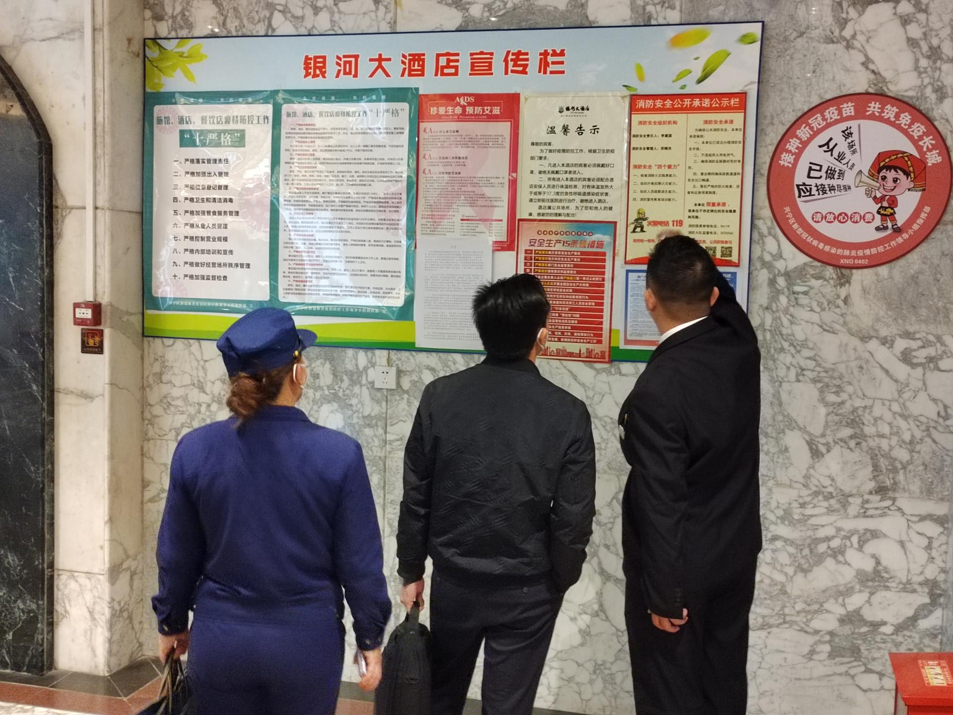 聯(lián)合督查組檢查銀河大酒店消防安全宣傳工作