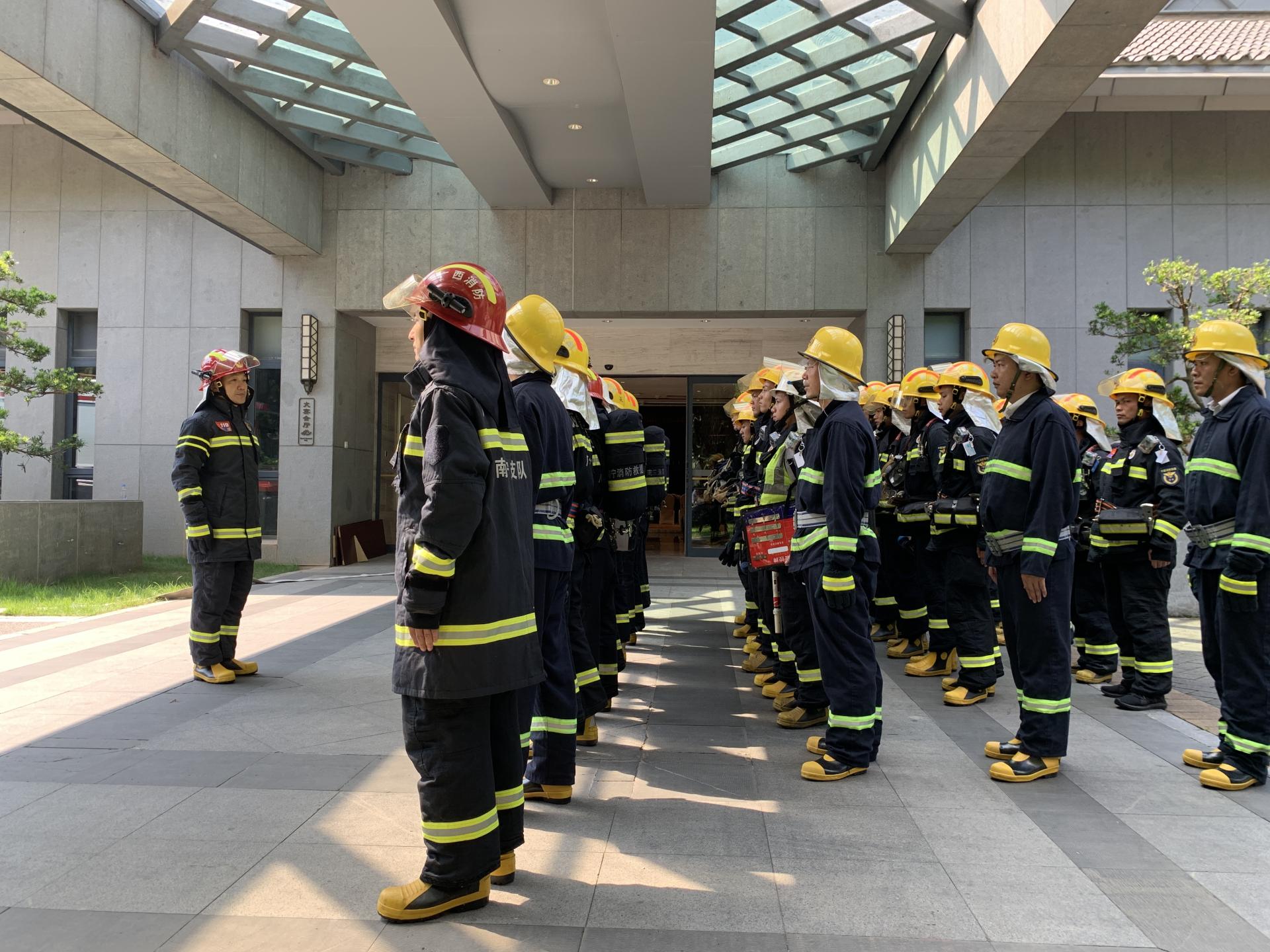 此次演練共有50余名消防指戰(zhàn)員、8名山莊微型消防站義務(wù)消防隊員參加,出動各類消防作戰(zhàn)車輛8輛,模擬在大型會議室召開會議時發(fā)生火災(zāi)的情景,對初期火災(zāi)的處置、人員搜救、火情控制等方面進(jìn)行演練。