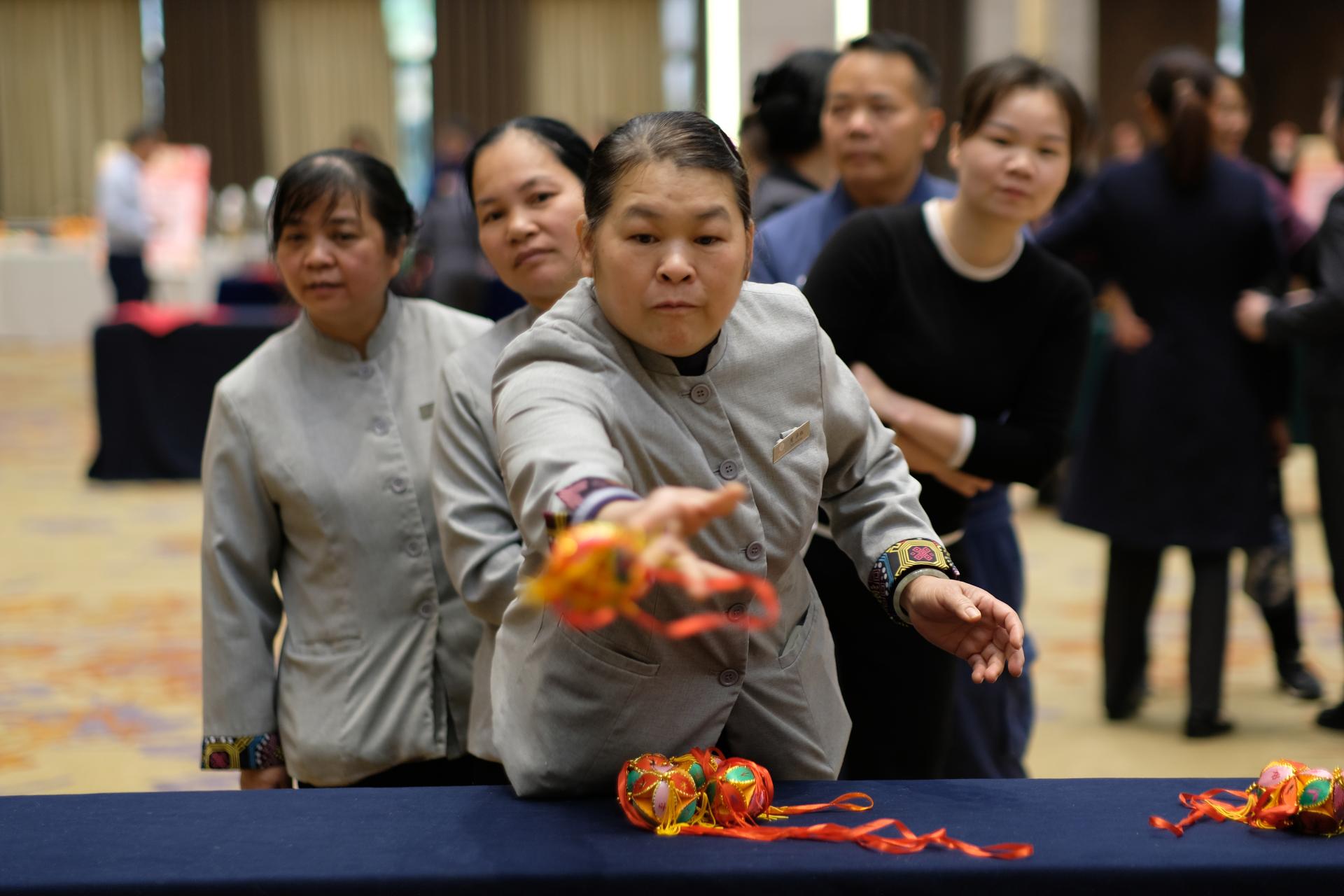 本次游園會吸引了近120余名員工踴躍參與,活動現(xiàn)場洋溢著節(jié)日的喜慶氣氛,各類趣味盎然的游戲讓人與人之間的關(guān)系更為緊密。本次活動特別設(shè)計了9個趣味十足的主題互動游藝區(qū),包含“投壺” “吸?!?“福氣套圈” “蒙面敲鑼” “母雞下蛋”“壯鄉(xiāng)繡球”和“垃圾分類”等內(nèi)容,促進(jìn)了參與者之間的交流與互動。手工制作區(qū)域同樣人氣爆棚,在工作人員的指導(dǎo)下,員工們親手制作元宵花燈,將對新一年的美好祝福融入到一件件手工藝品中。