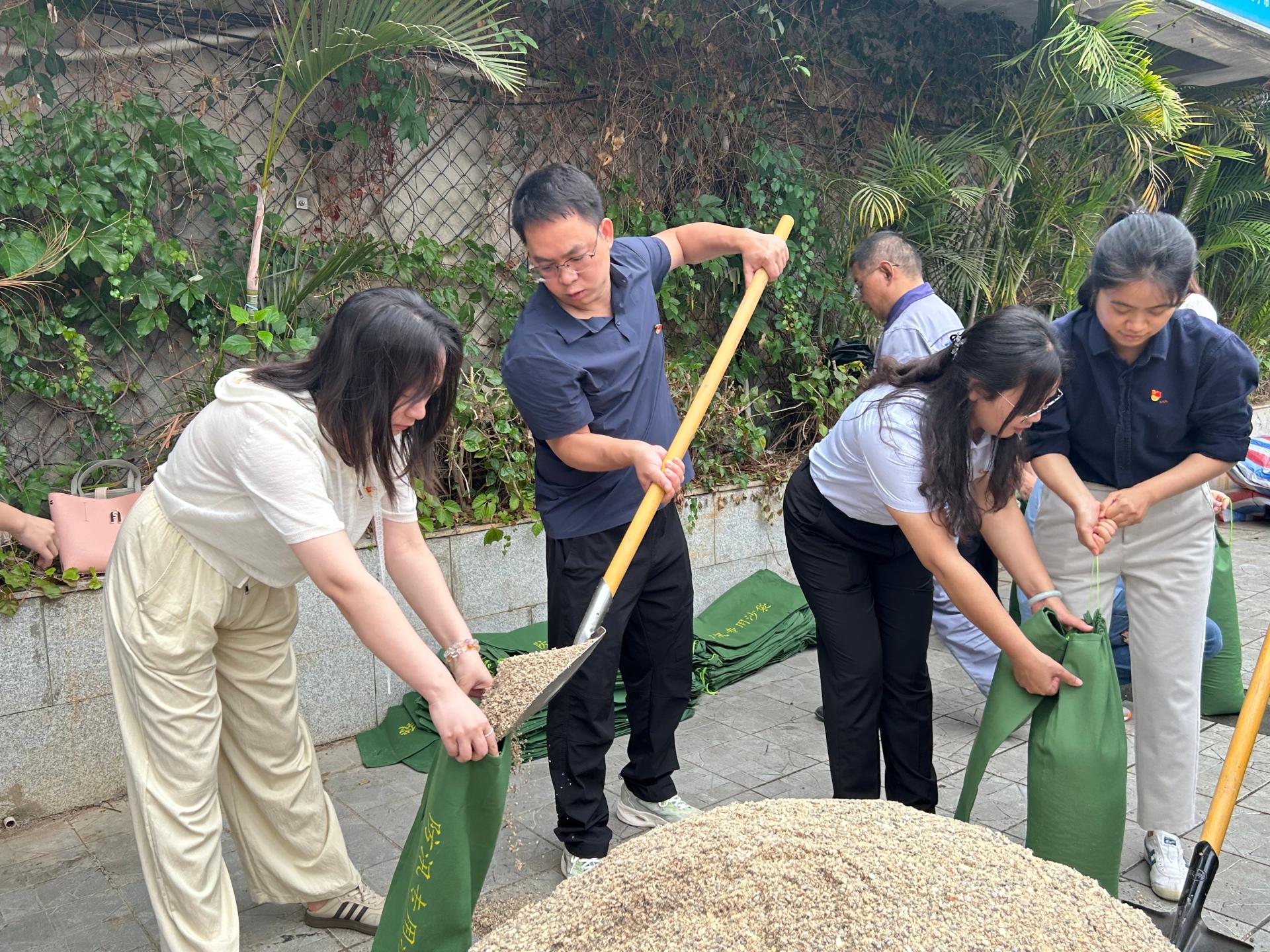 在志愿服務(wù)活動(dòng)現(xiàn)場(chǎng),威寧資產(chǎn)經(jīng)營(yíng)集團(tuán)“威惠星”黨員志愿者手持沙鏟將細(xì)沙裝袋、扎緊、搬運(yùn),動(dòng)作迅速,井然有序,筑起一道道堅(jiān)固的“防汛沙袋墻”。