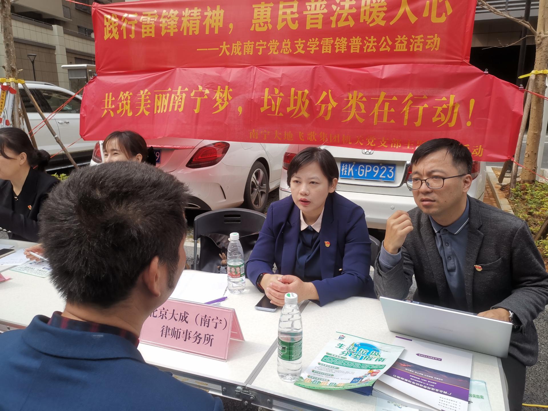 為深入學(xué)習(xí)貫徹黨的二十大精神,全面貫徹落實(shí)習(xí)近平總書記對(duì)深入開展學(xué)雷鋒活動(dòng)作出的重要指示精神,進(jìn)一步弘揚(yáng)“奉獻(xiàn)、友愛、互助、進(jìn)步”的志愿服務(wù)精神,2023年3月3日,在第60個(gè)學(xué)雷鋒紀(jì)念日到來(lái)之際,南寧大地飛歌集團(tuán)公司黨委充分發(fā)揮黨建領(lǐng)航作用,聯(lián)合下屬監(jiān)管單位南寧民影公司及北京(大成)律師事務(wù)所等多家單位到人民東社區(qū)、百花嶺社區(qū)、桂花社區(qū)共同開展了以“綠城閃耀志愿紅 文明實(shí)踐學(xué)雷鋒”為主題的志愿服務(wù)活動(dòng),以實(shí)際行動(dòng)踐行雷鋒精神。
