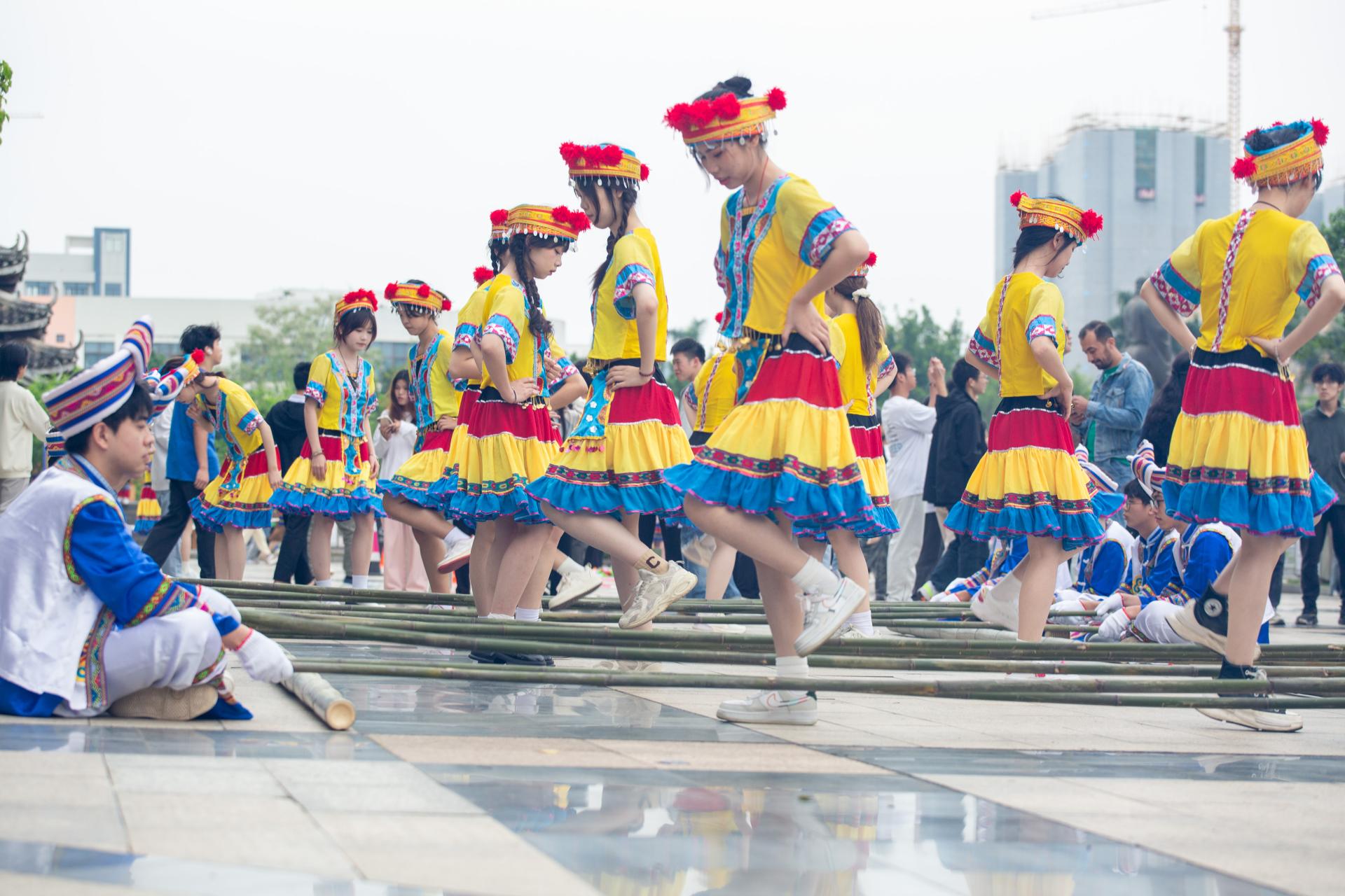 走進民俗文化街區(qū),學(xué)校師生身著廣西少數(shù)民族盛裝迎面而來。民俗文化街區(qū)設(shè)置了傳統(tǒng)民俗藝術(shù)體驗以及傳統(tǒng)美食品嘗攤位以推介風(fēng)土人情,讓師生們一站式打卡廣西的特產(chǎn)風(fēng)物。現(xiàn)場活動包括民族服裝試穿、陶藝、繡球、香囊、壯錦、剪紙等手工藝品制作體驗及展示。在此,老師同學(xué)們不僅可以品味艾葉粑粑、青團、彩蛋等壯族特色美食,還可以過一把唱山歌的癮。民族趣味游園區(qū),廣西少數(shù)民族傳統(tǒng)體育活動在此開展得如火如荼,竹竿舞榔聲朗朗,節(jié)奏鏗鏘,表達著對五谷豐登、幸福吉祥的祈求和渴望;旁邊的五彩繡球在揮拋中展現(xiàn)壯鄉(xiāng)風(fēng)情;投壺和三人板鞋趣味運動等多項深受師生喜愛的活動,吸引了師生的積極參與,現(xiàn)場氣氛熱烈,歡聲笑語不斷。沉浸式體驗“廣西三月三”,共同感受節(jié)日的歡樂和溫暖。