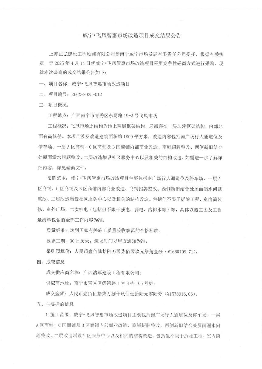 威寧·飛鳳智惠市場(chǎng)改造項(xiàng)目成交結(jié)果公告