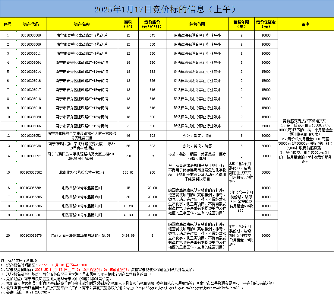 2025年1月17日競(jìng)價(jià)標(biāo)的信息(現(xiàn)場(chǎng)競(jìng)價(jià))