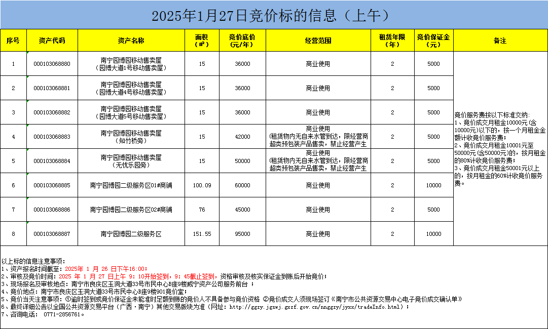 2025年1月27日競價標的信息(現(xiàn)場競價)