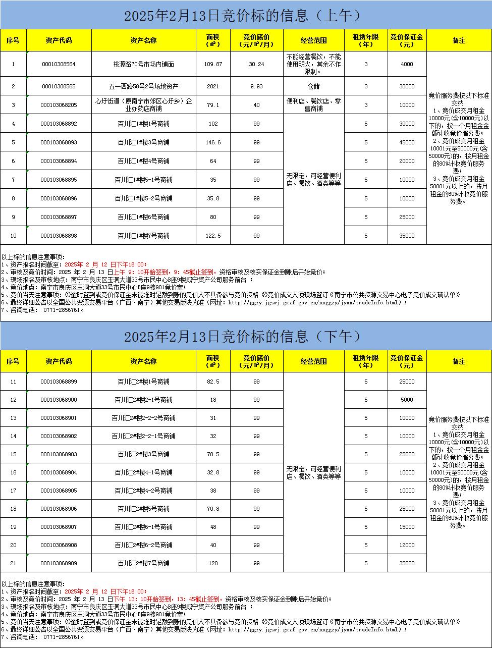2025年2月13日競價標(biāo)的信息(現(xiàn)場競價)