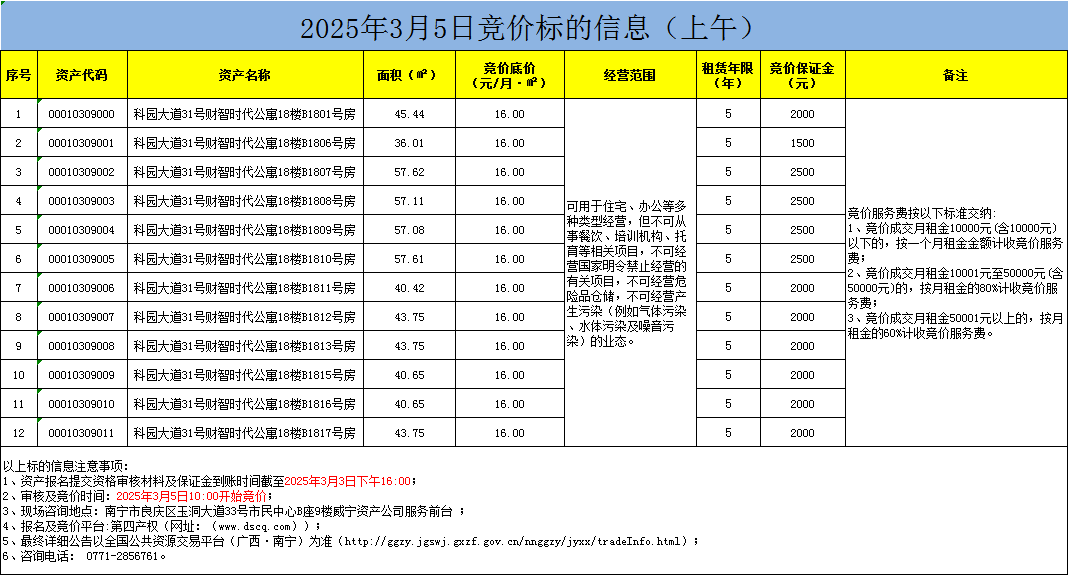2025年3月5日競(jìng)價(jià)標(biāo)的信息(線上競(jìng)價(jià))