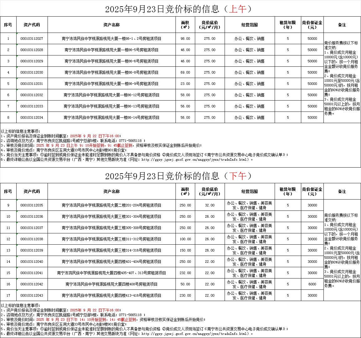 2025年9月23日競(jìng)價(jià)標(biāo)的信息(現(xiàn)場(chǎng)競(jìng)價(jià))