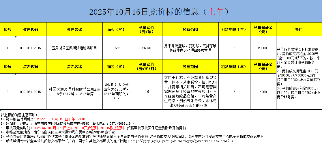 2025年10月16日競(jìng)價(jià)標(biāo)的信息(現(xiàn)場(chǎng)競(jìng)價(jià))