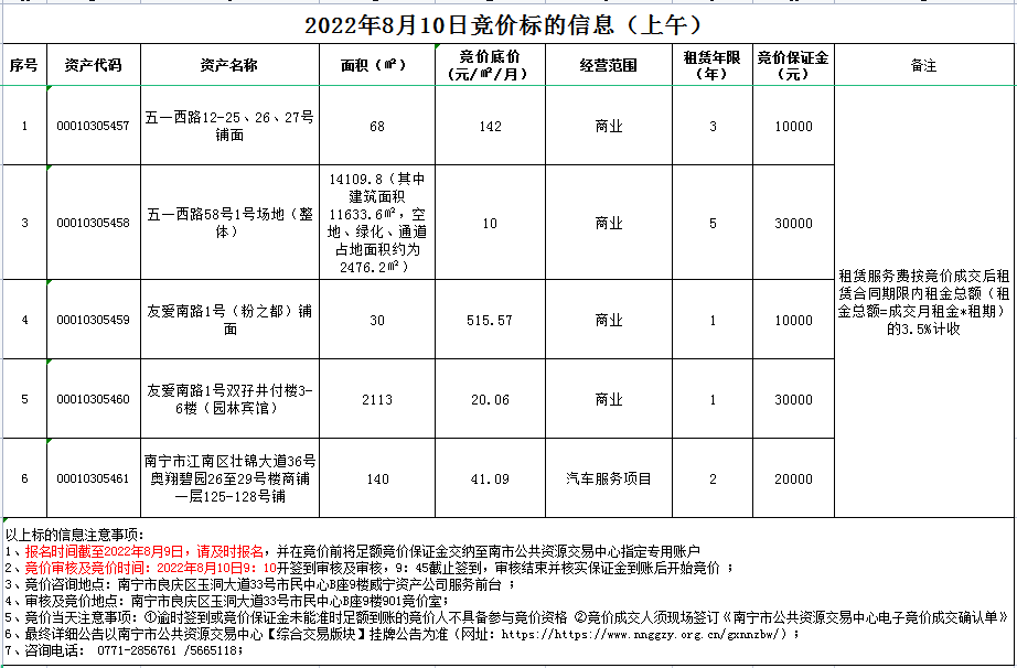 威寧資產(chǎn)公司2022年8月10日公開競(jìng)價(jià)標(biāo)的信息