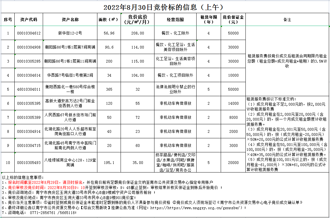威寧資產(chǎn)公司2022年8月30日公開競(jìng)價(jià)標(biāo)的信息