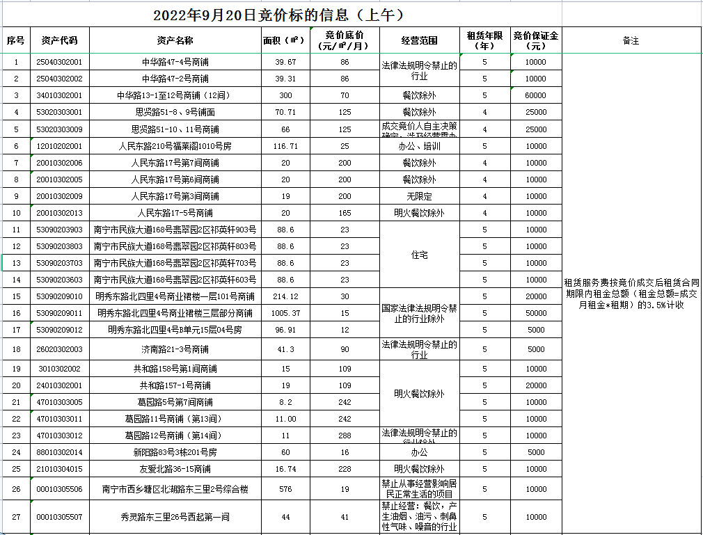 威寧資產(chǎn)公司2022年9月20日公開競(jìng)價(jià)標(biāo)的信息