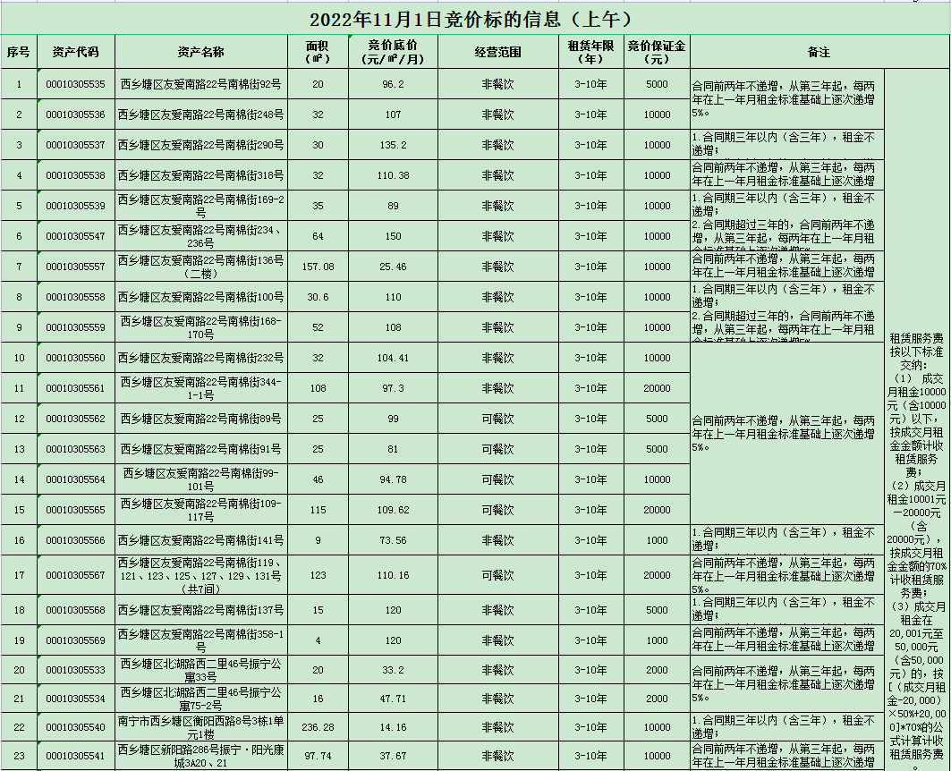 2022年11月1日競(jìng)價(jià)標(biāo)的信息