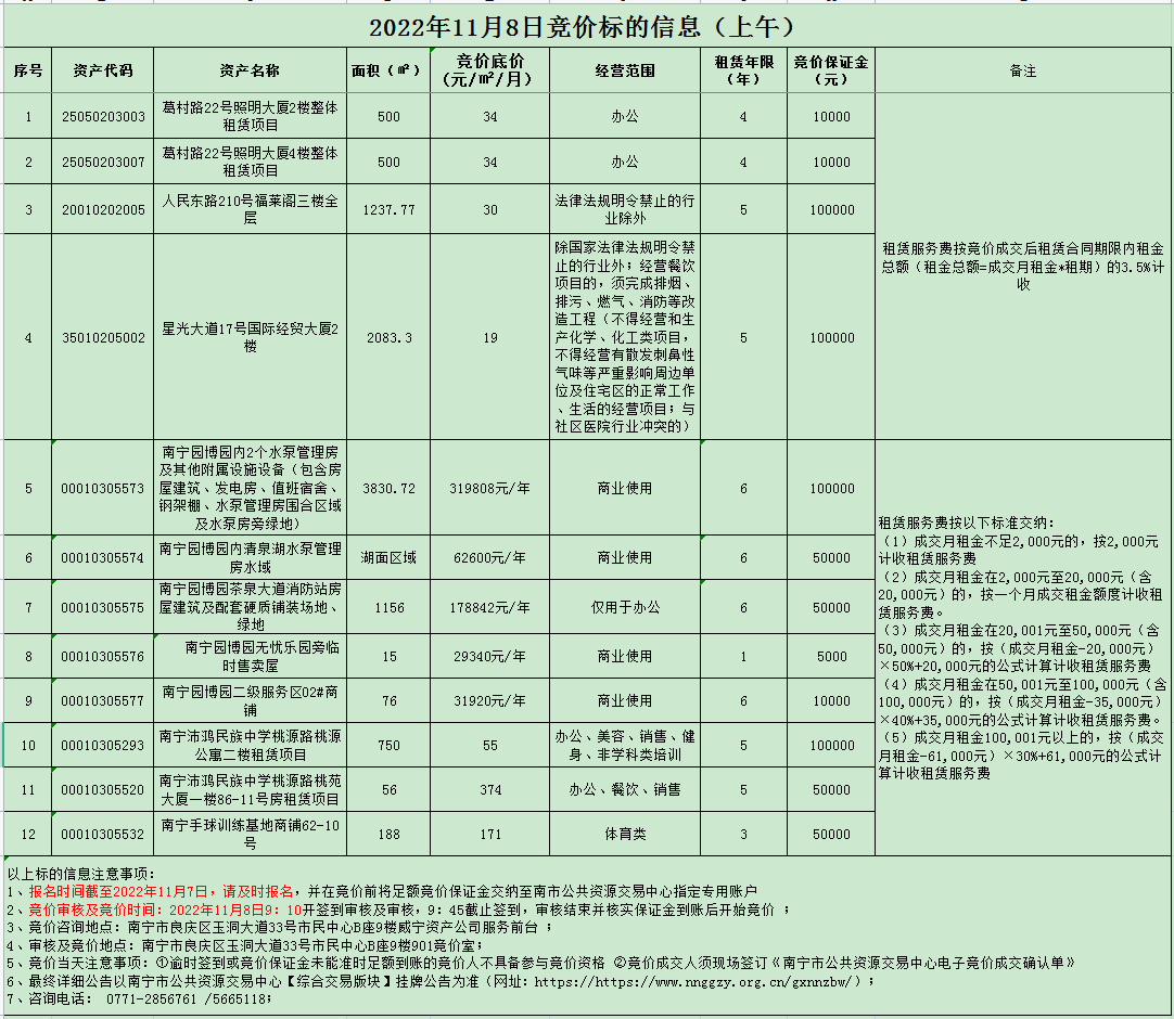 2022年11月8日競(jìng)價(jià)標(biāo)的信息