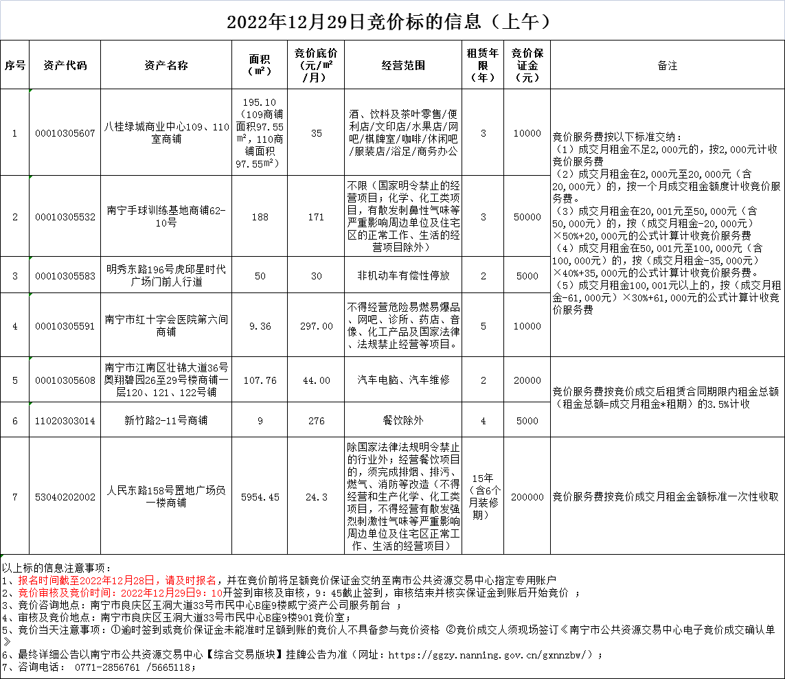 2022年12月29日競(jìng)價(jià)標(biāo)的信息